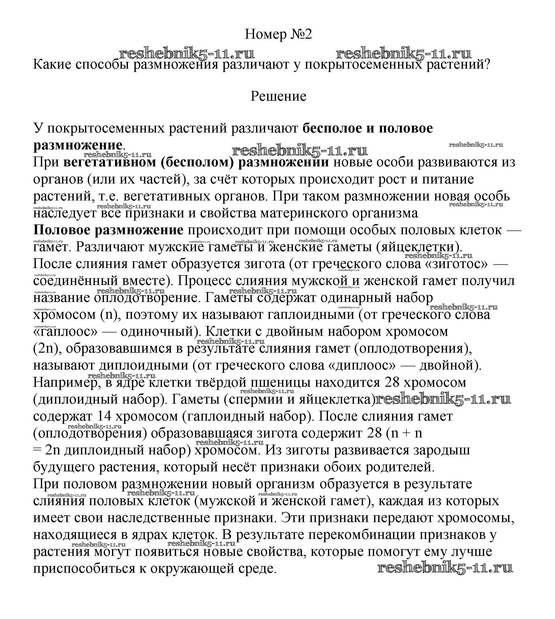 Готовая домашняя работа с ответами по Биологии за 6 класс Пасечник Учебник Линейный курс Дрофа 2020 ФГОС - Вопросы 2