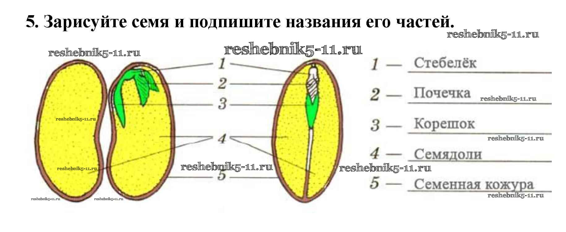 Готовая домашняя работа с ответами по Биологии за 6 класс Пасечник Учебник Вертикаль Дрофа 2014 ФГОС - Строение семян двудольных растений 5