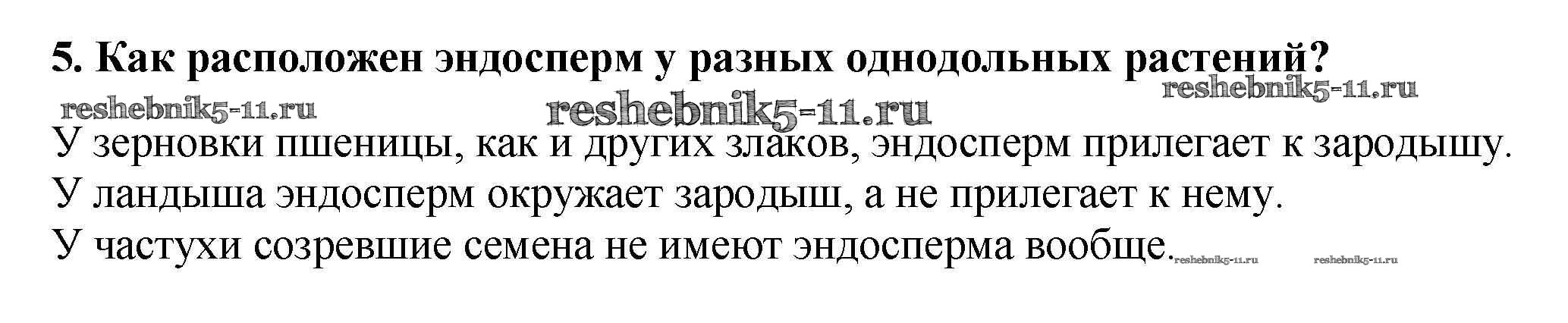 Готовая домашняя работа с ответами по Биологии за 6 класс Пасечник Учебник Вертикаль Дрофа 2014 ФГОС - Вопросы в конце параграфа 5