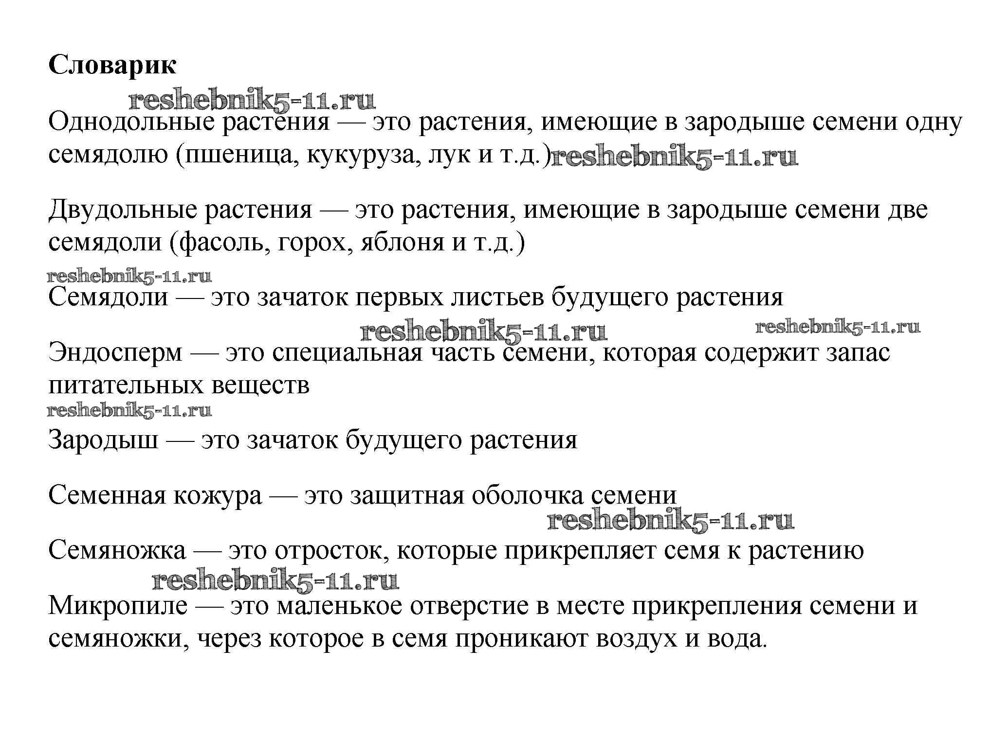 Готовая домашняя работа с ответами по Биологии за 6 класс Пасечник Учебник Вертикаль Дрофа 2014 ФГОС - Словарик 1