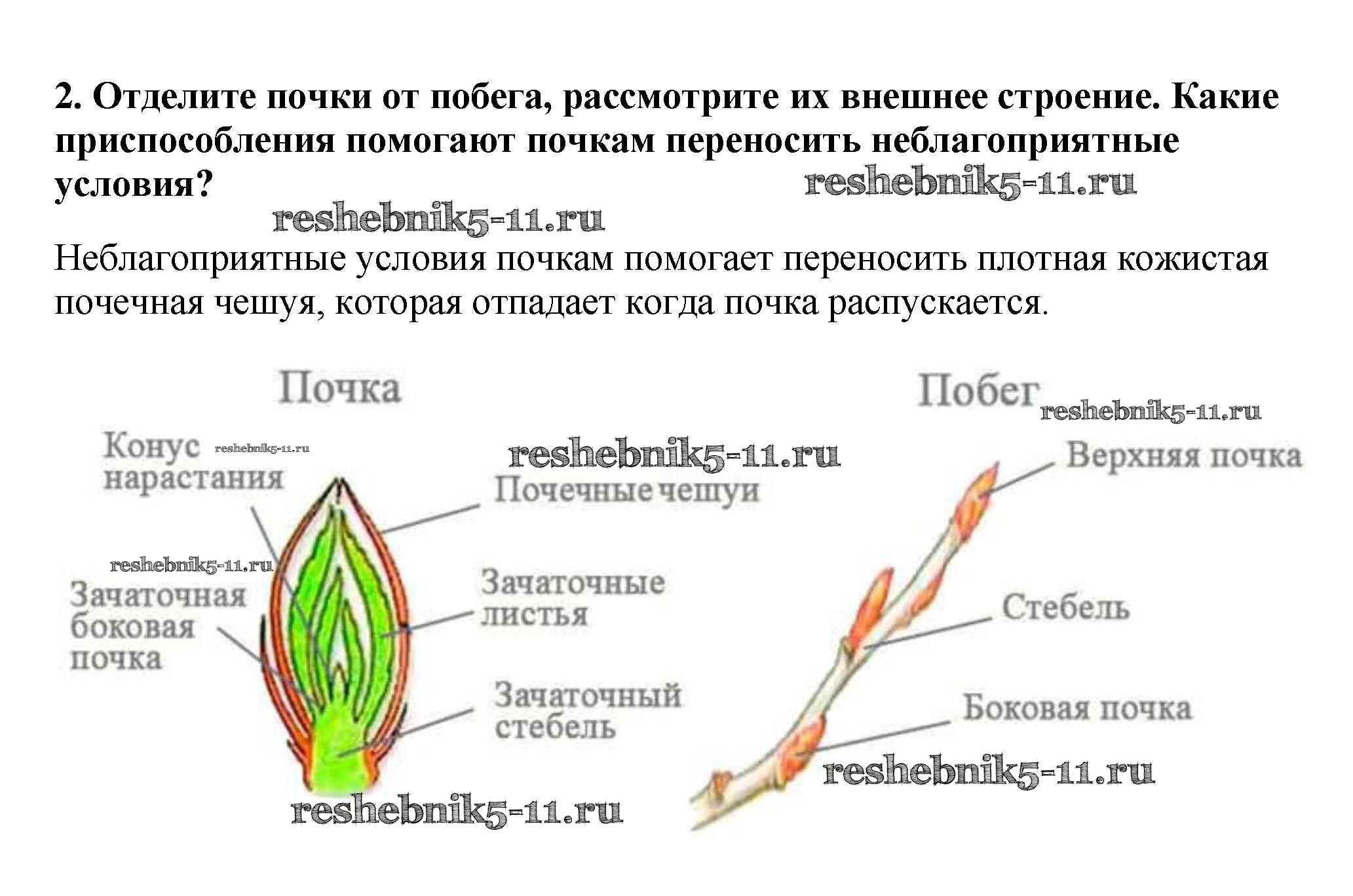 Решебник / §5 / строение почек. расположение почек на стебле / 2