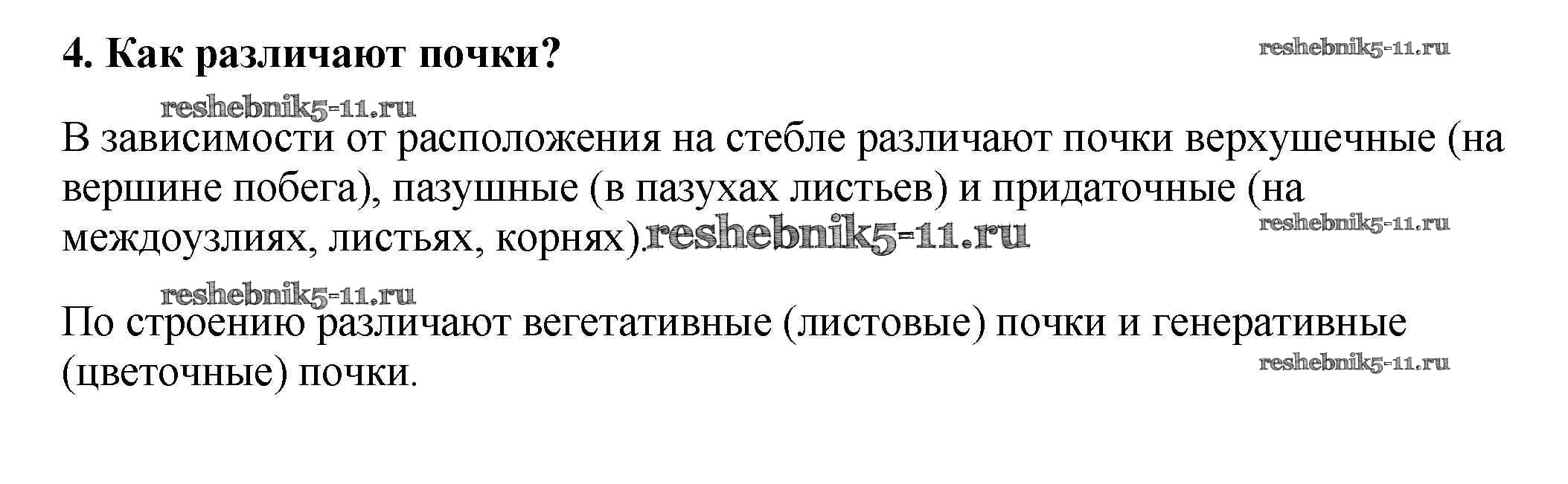 Биология за 6 класс Пасечник Учебник Вертикаль Дрофа вопрос в конце параграфа 4
