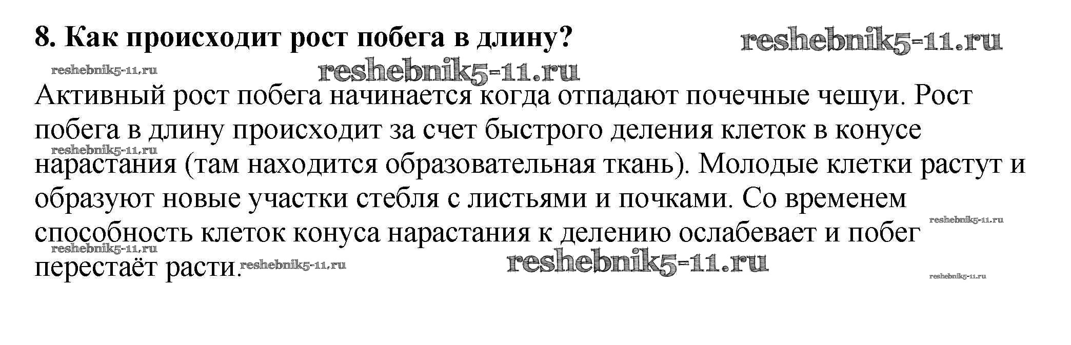 Готовая домашняя работа с ответами по Биологии за 6 класс Пасечник Учебник Вертикаль Дрофа 2014 ФГОС - Вопросы в конце параграфа 8