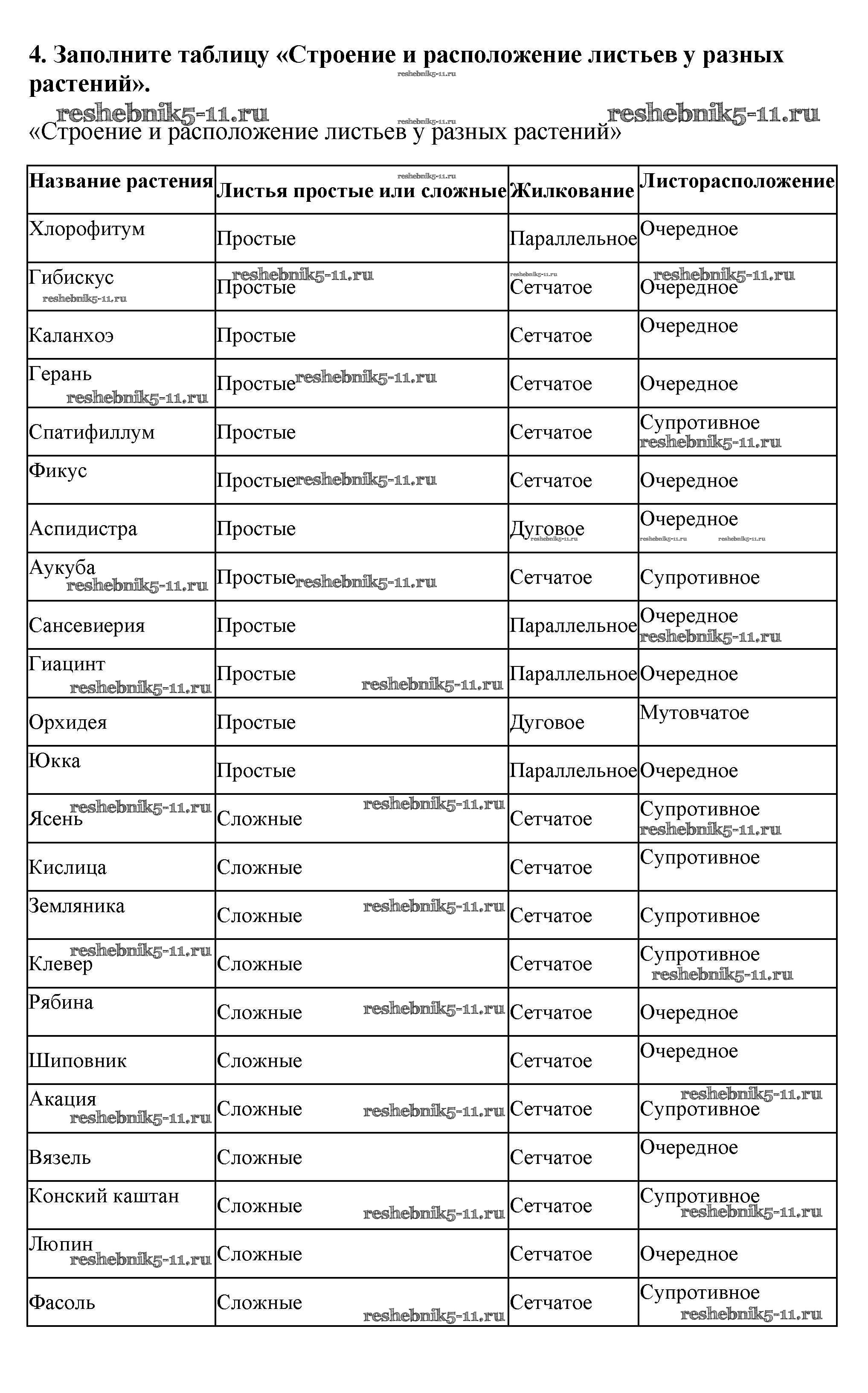 Готовая домашняя работа с ответами по Биологии за 6 класс Пасечник Учебник Вертикаль Дрофа 2014 ФГОС - Листья простые и сложные, их жилкование и листорасположение 4
