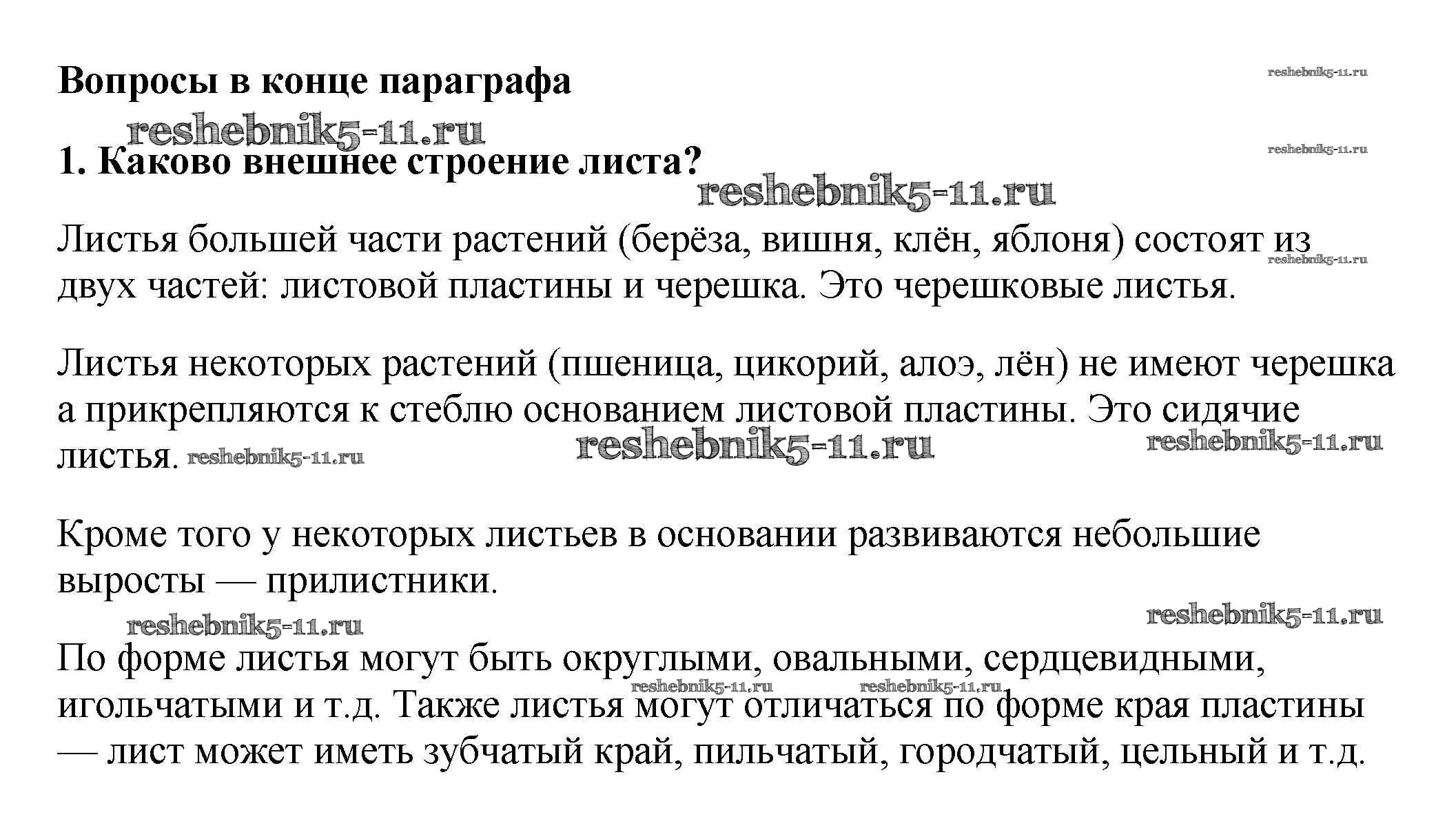 Биология за 6 класс Пасечник Учебник Вертикаль Дрофа вопрос в конце параграфа 1