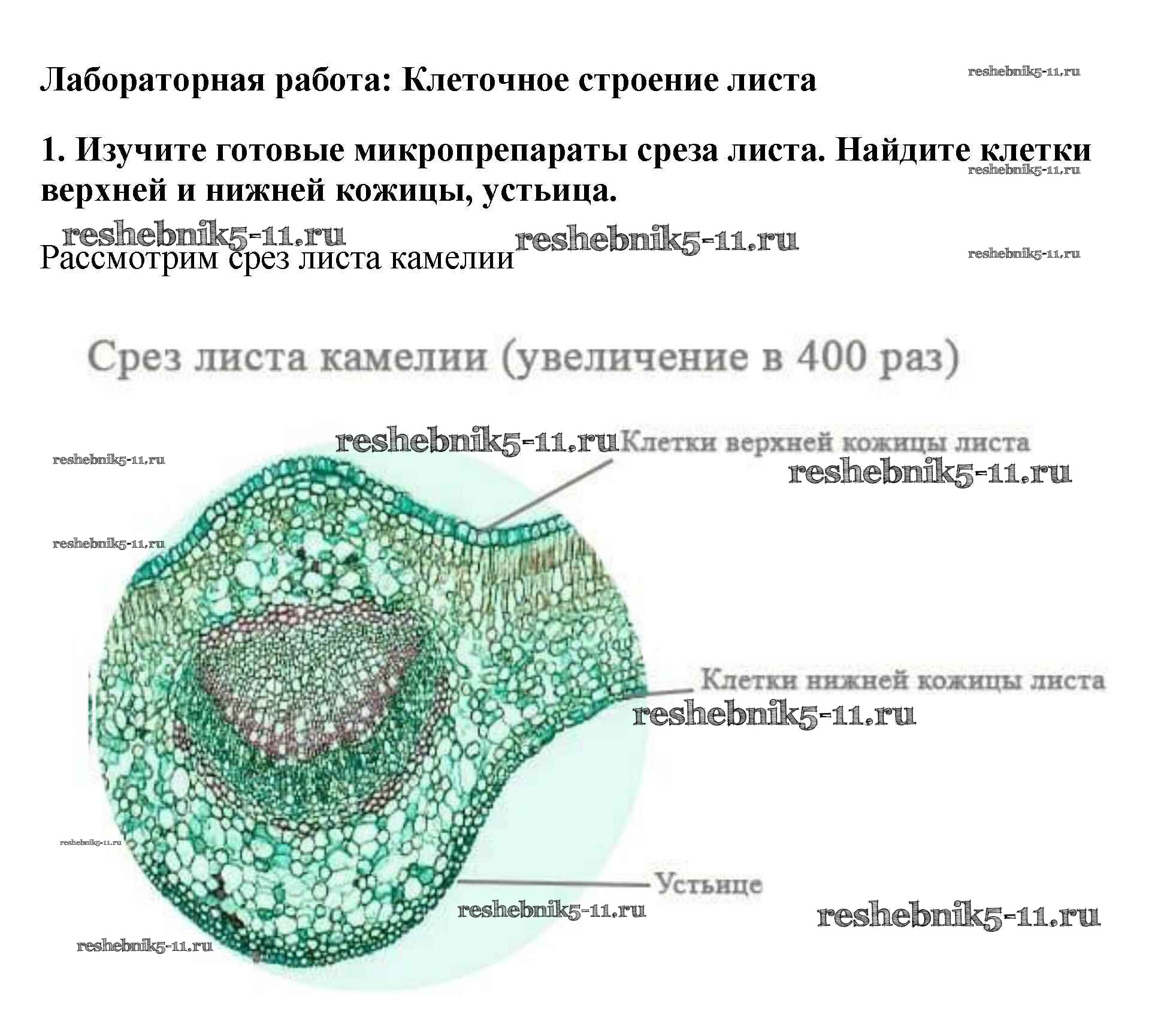 Готовая домашняя работа с ответами по Биологии за 6 класс Пасечник Учебник Вертикаль Дрофа 2014 ФГОС - Клеточное строение листа 1