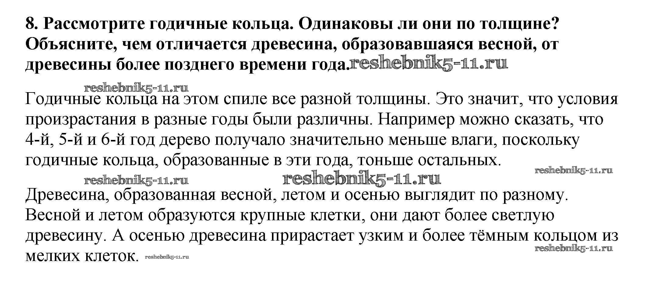 Готовая домашняя работа с ответами по Биологии за 6 класс Пасечник Учебник Вертикаль Дрофа 2014 ФГОС - Внутреннее строение ветки дерева 8