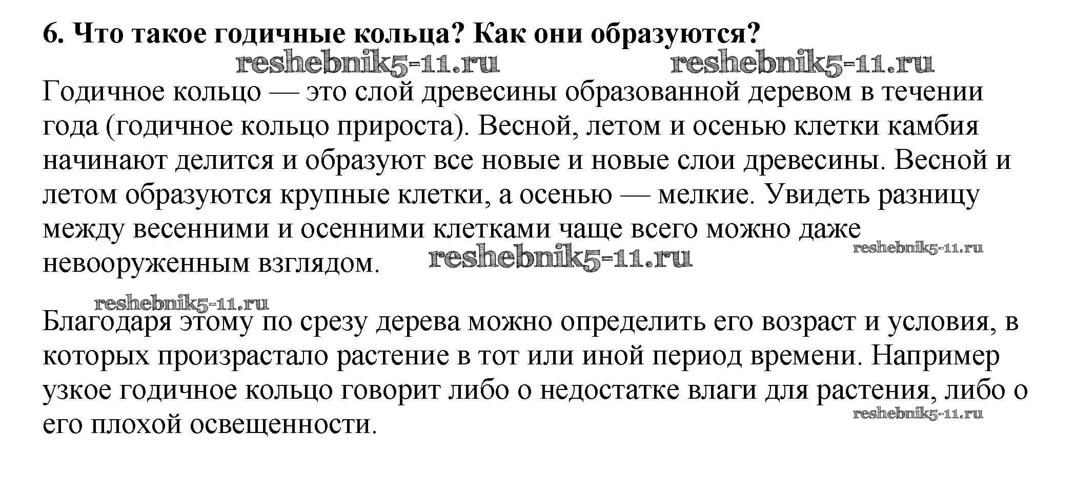 Готовая домашняя работа с ответами по Биологии за 6 класс Пасечник Учебник Вертикаль Дрофа 2014 ФГОС - Вопросы в конце параграфа 6