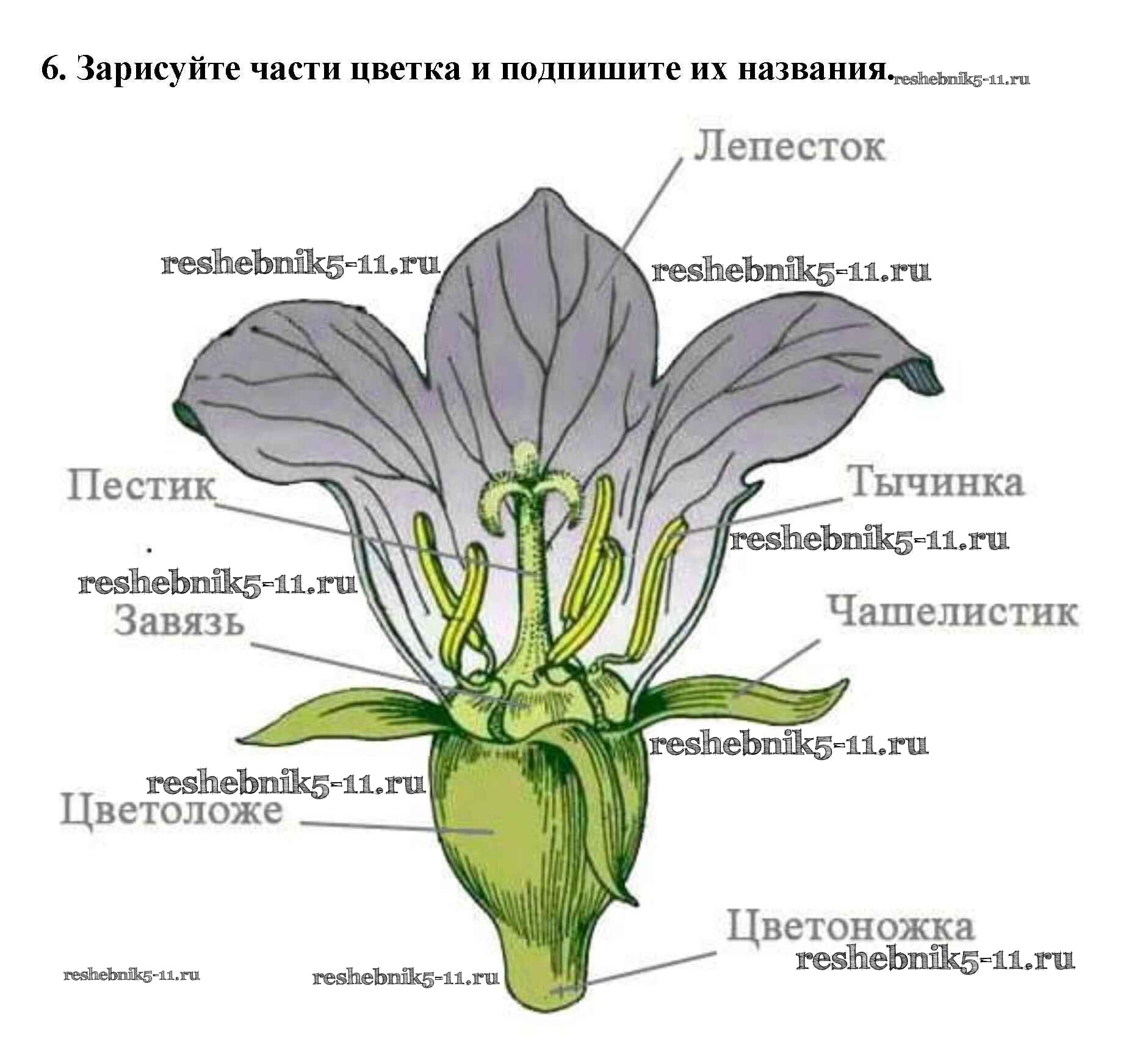 Готовая домашняя работа с ответами по Биологии за 6 класс Пасечник Учебник Вертикаль Дрофа 2014 ФГОС - Строение цветка 6