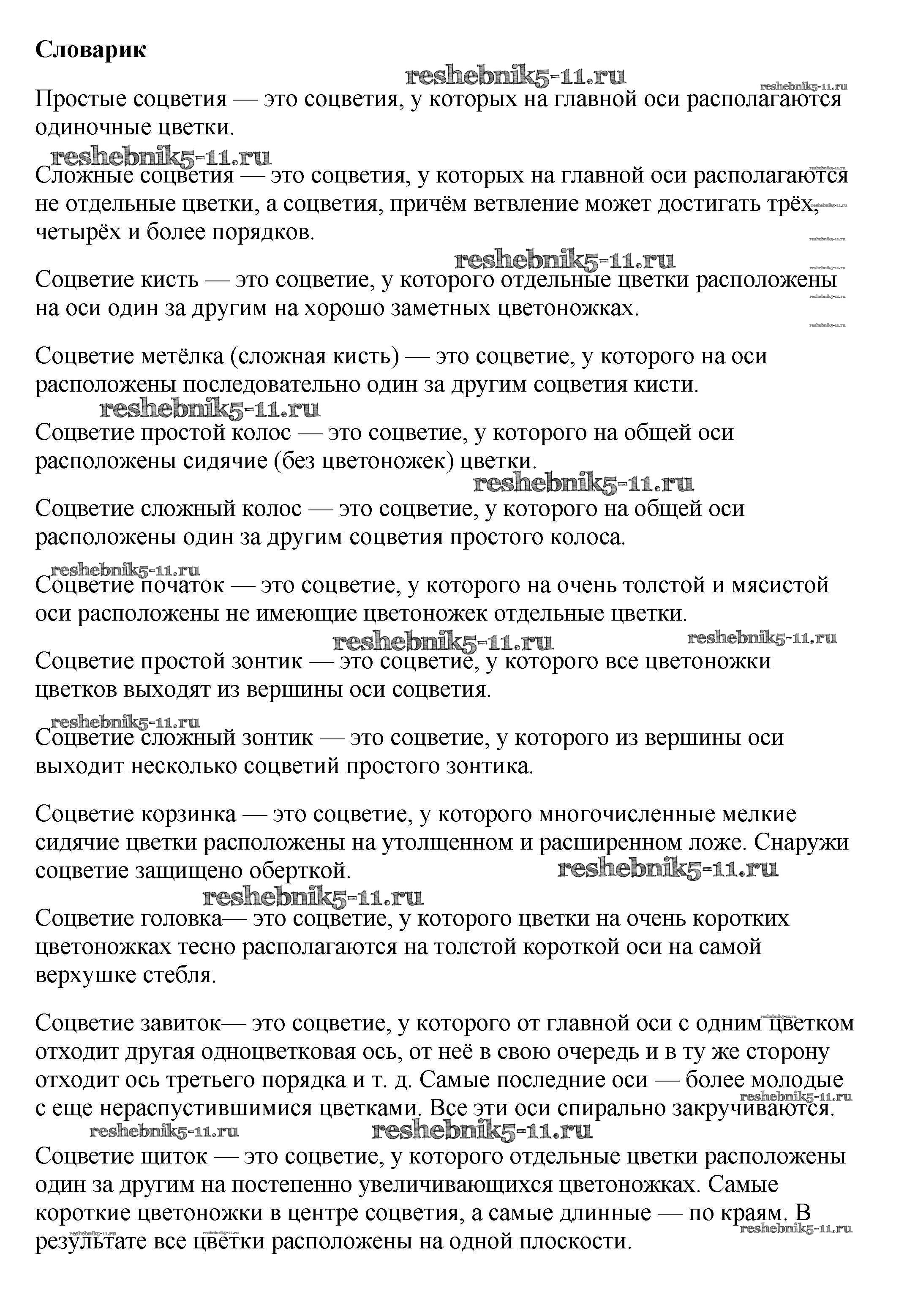 Готовая домашняя работа с ответами по Биологии за 6 класс Пасечник Учебник Вертикаль Дрофа 2014 ФГОС - Словарик 1