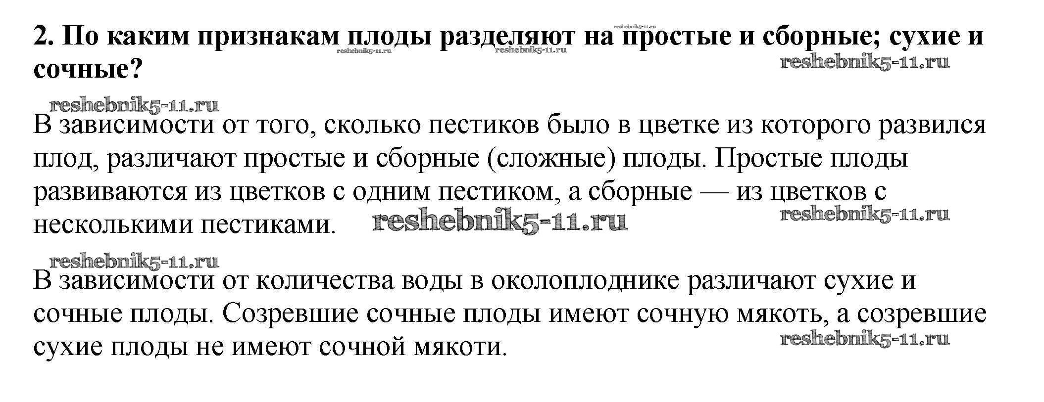 Готовая домашняя работа с ответами по Биологии за 6 класс Пасечник Учебник Вертикаль Дрофа 2014 ФГОС - Вопросы в конце параграфа 2