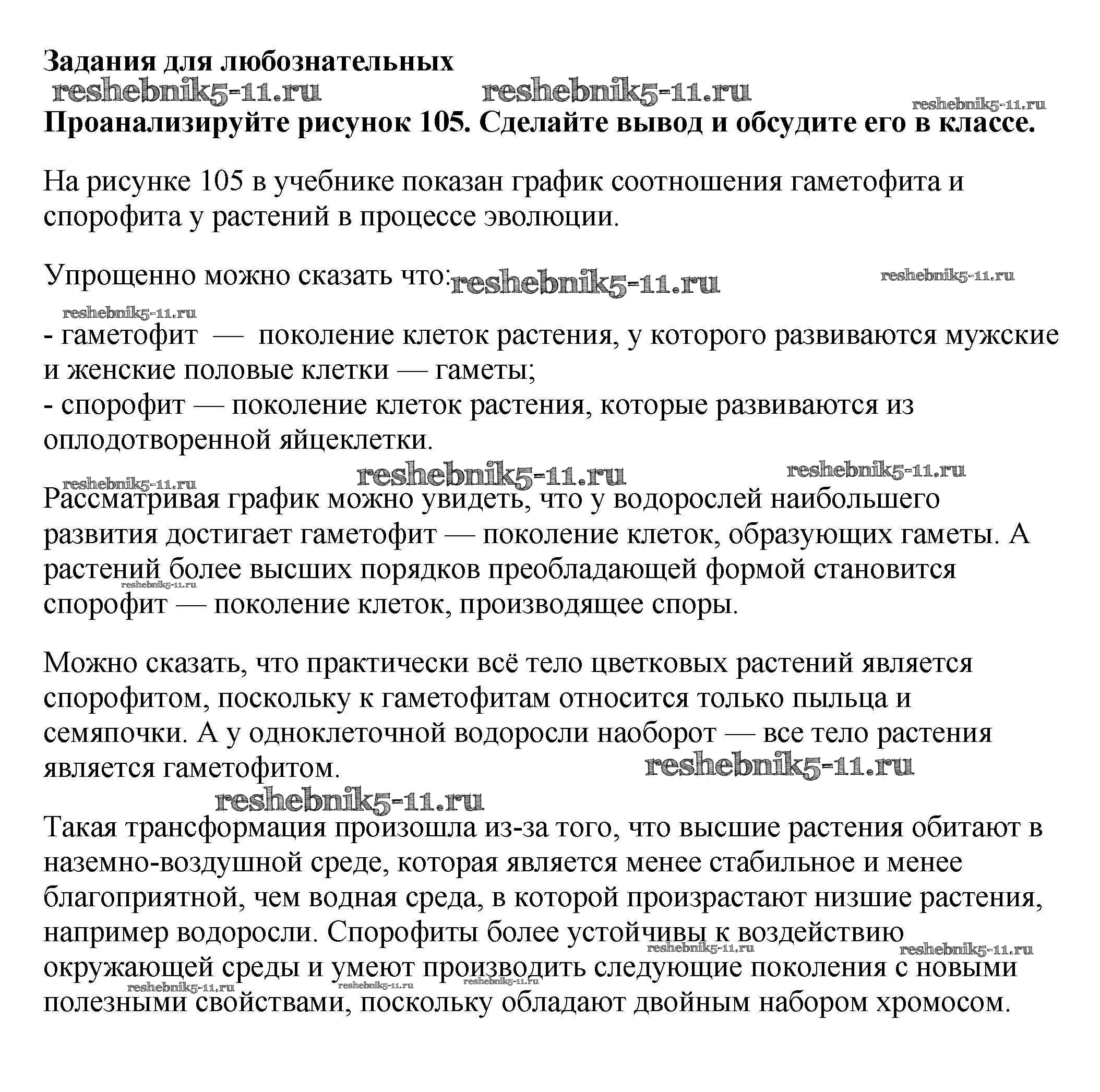 Готовая домашняя работа с ответами по Биологии за 6 класс Пасечник Учебник Вертикаль Дрофа 2014 ФГОС - Задания для любознательных 1
