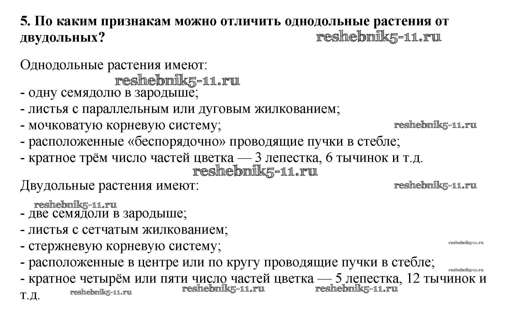 Готовая домашняя работа с ответами по Биологии за 6 класс Пасечник Учебник Вертикаль Дрофа 2014 ФГОС - Вопросы в конце параграфа 5