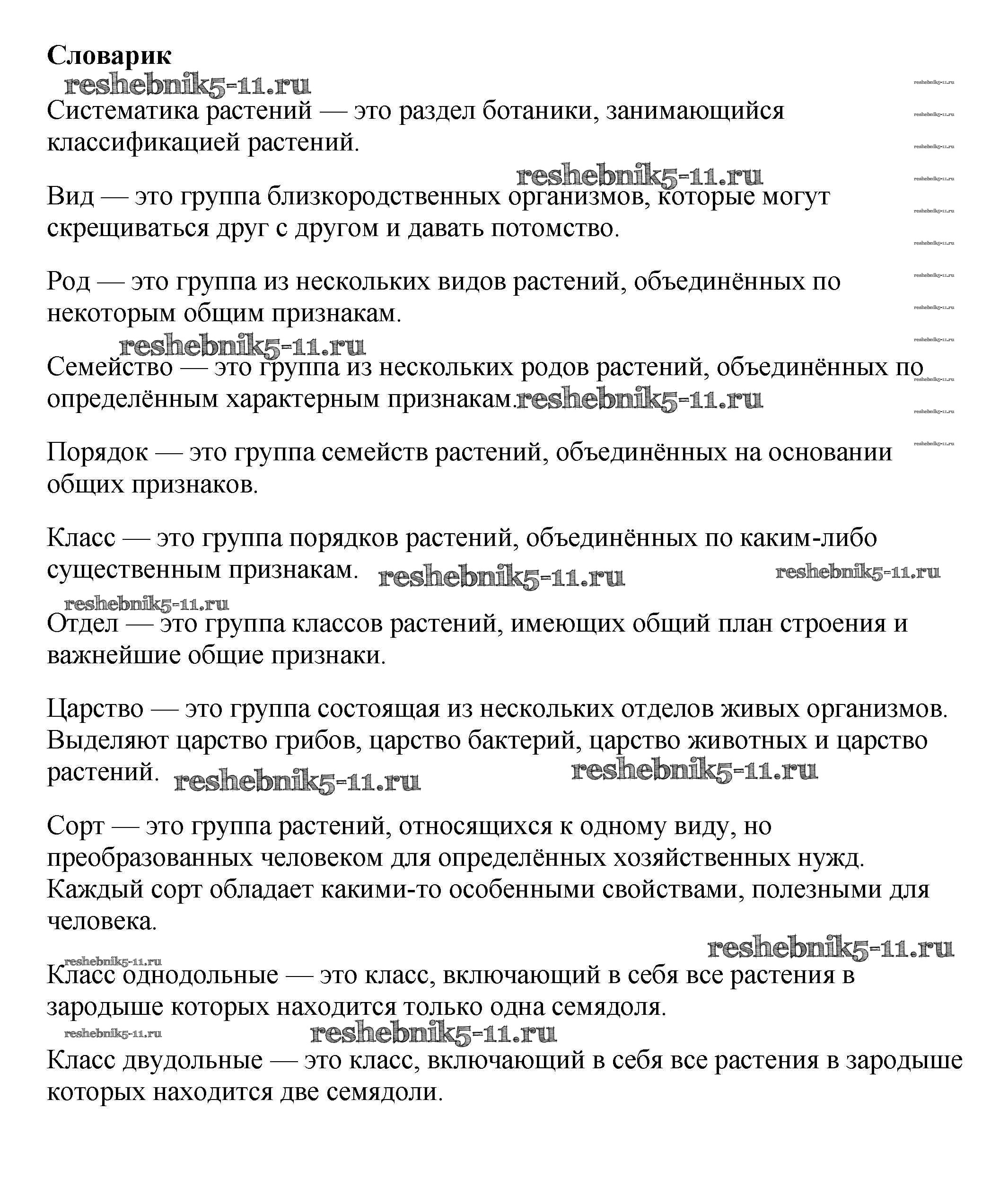 Готовая домашняя работа с ответами по Биологии за 6 класс Пасечник Учебник Вертикаль Дрофа 2014 ФГОС - Словарик 1