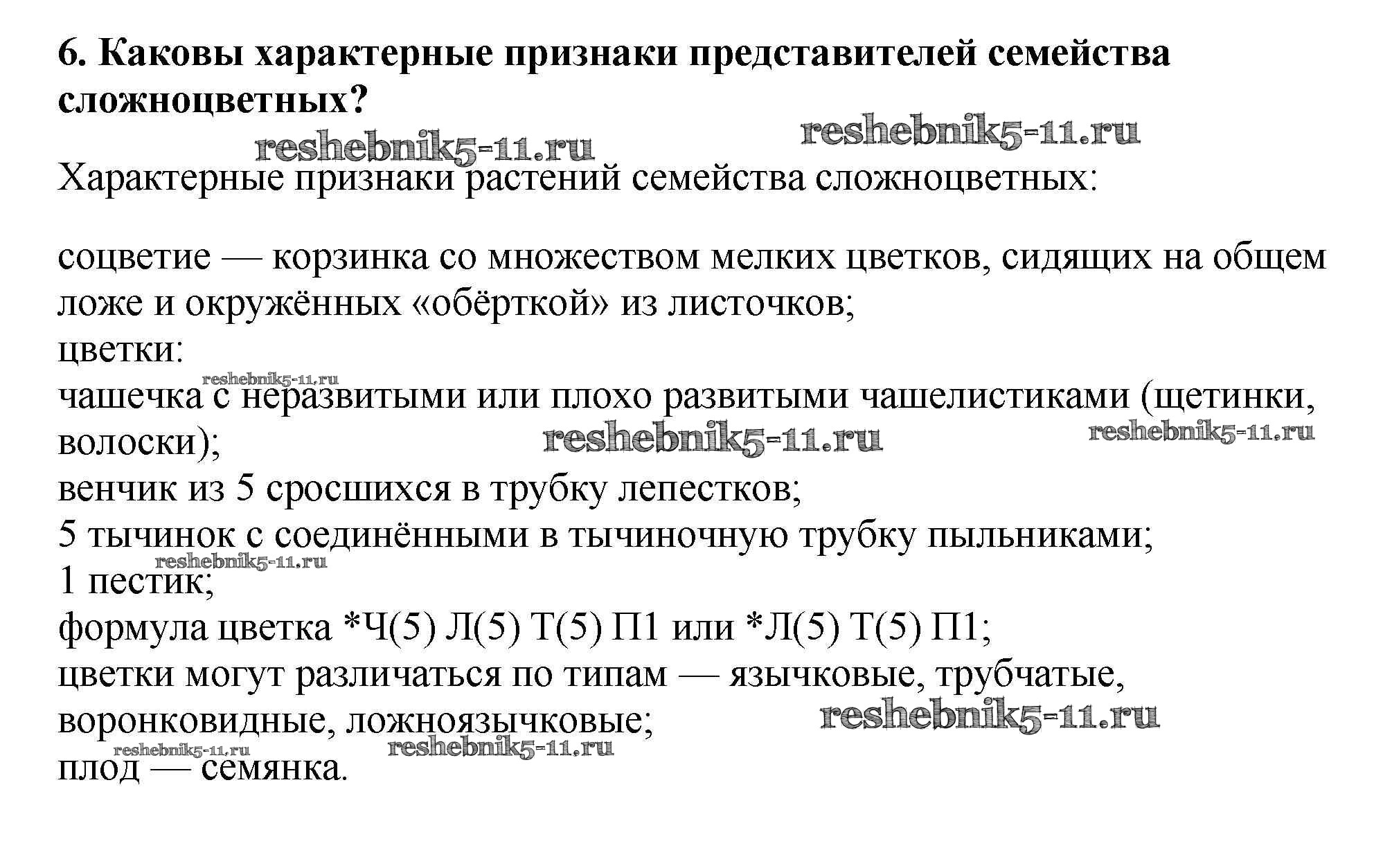 Готовая домашняя работа с ответами по Биологии за 6 класс Пасечник Учебник Вертикаль Дрофа 2014 ФГОС - Вопросы в конце параграфа 6