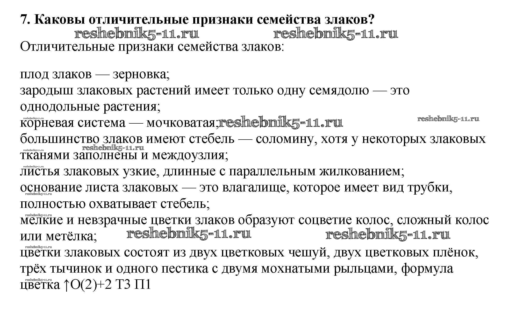 Готовая домашняя работа с ответами по Биологии за 6 класс Пасечник Учебник Вертикаль Дрофа 2014 ФГОС - Вопросы в конце параграфа 7