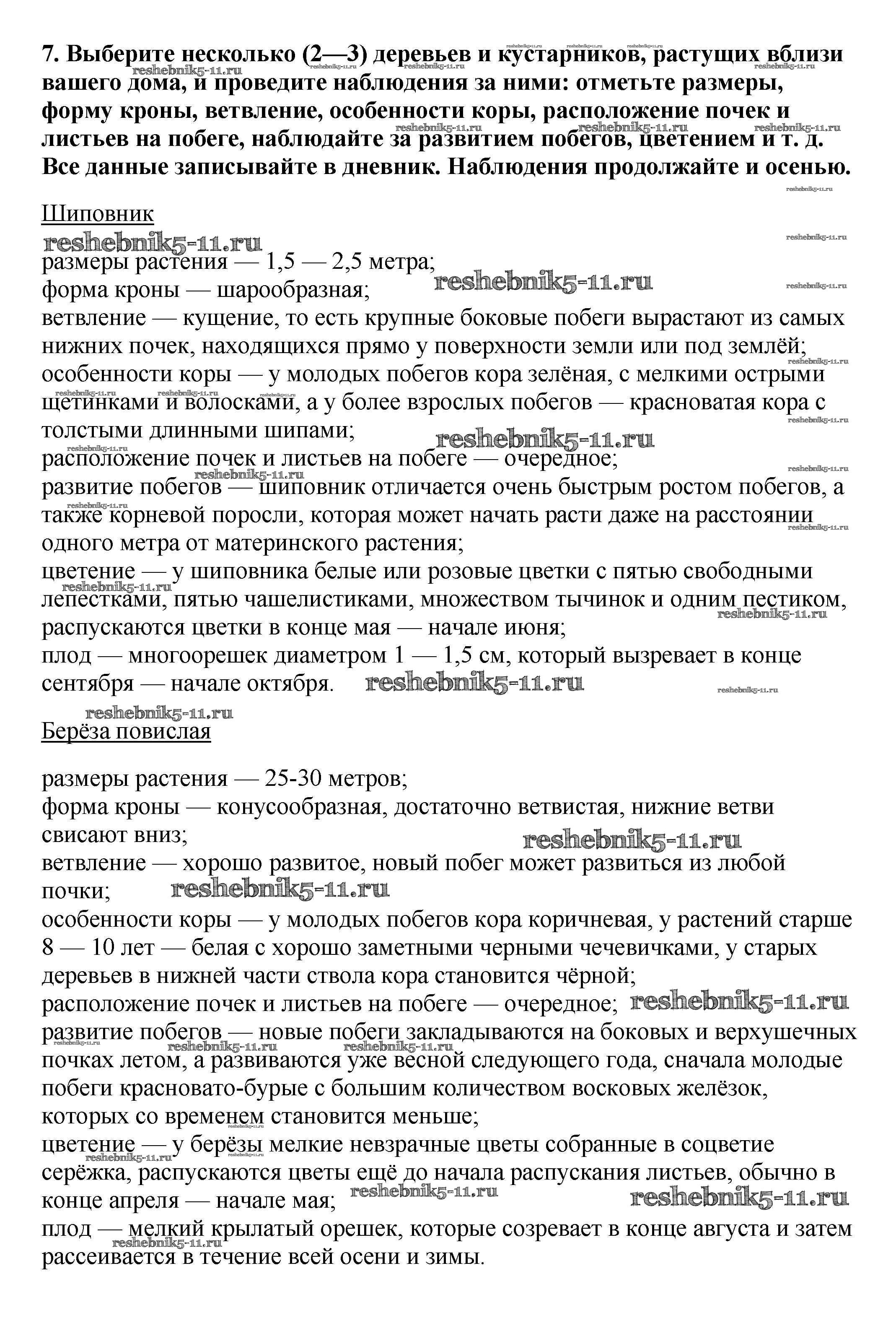 Готовая домашняя работа с ответами по Биологии за 6 класс Пасечник Учебник Вертикаль Дрофа 2014 ФГОС - Летние задания 7