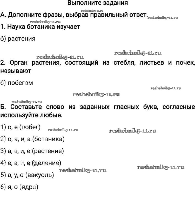 Готовая домашняя работа с ответами по Биологии за 6 класс Пономарева, Корнилова, Кучменко Учебник Алгоритм успеха Вентана-граф 2018 ФГОС - Подведём итоги. Глава 1 Тестовые задания