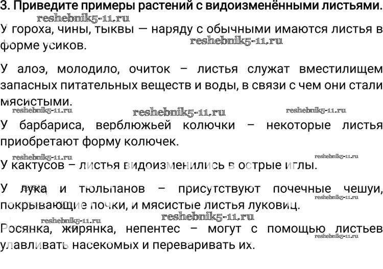 Готовая домашняя работа с ответами по Биологии за 6 класс Пономарева, Корнилова, Кучменко Учебник Алгоритм успеха Вентана-граф 2018 ФГОС - Вопросы 3