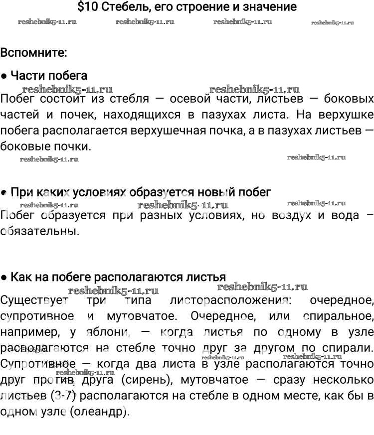 Готовая домашняя работа с ответами по Биологии за 6 класс Пономарева, Корнилова, Кучменко Учебник Алгоритм успеха Вентана-граф 2018 ФГОС - §10. Стебель, его строение и значение Вспомните
