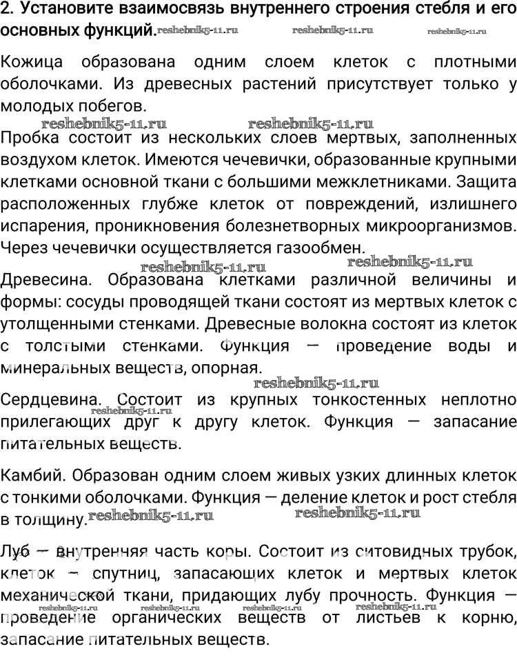 Готовая домашняя работа с ответами по Биологии за 6 класс Пономарева, Корнилова, Кучменко Учебник Алгоритм успеха Вентана-граф 2018 ФГОС - Вопросы 2