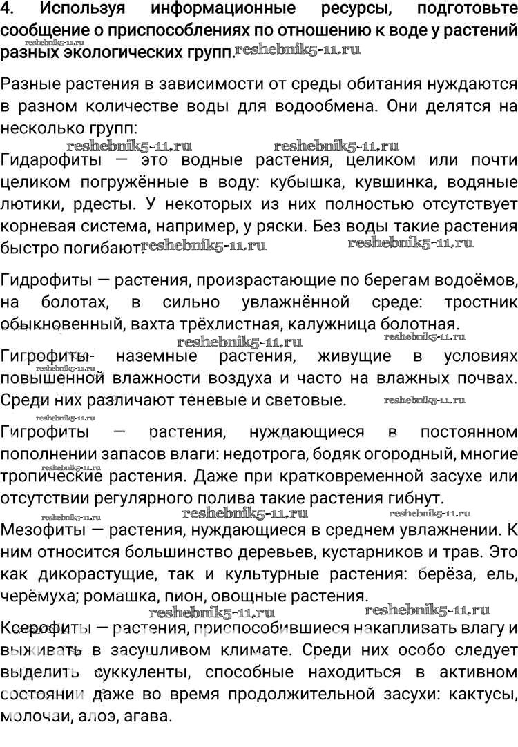 Готовая домашняя работа с ответами по Биологии за 6 класс Пономарева, Корнилова, Кучменко Учебник Алгоритм успеха Вентана-граф 2018 ФГОС - Вопросы 4