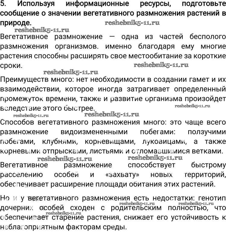 Готовая домашняя работа с ответами по Биологии за 6 класс Пономарева, Корнилова, Кучменко Учебник Алгоритм успеха Вентана-граф 2018 ФГОС - Вопросы 5