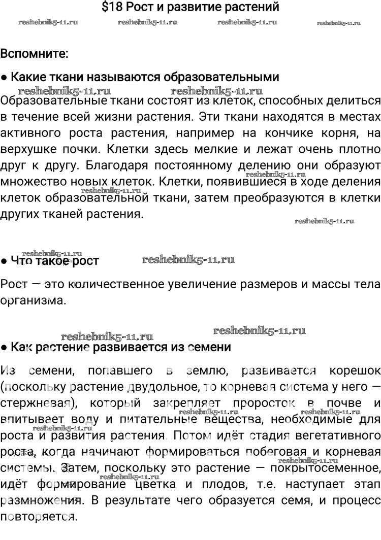 Готовая домашняя работа с ответами по Биологии за 6 класс Пономарева, Корнилова, Кучменко Учебник Алгоритм успеха Вентана-граф 2018 ФГОС - §18. Рост и развитие растений Вспомните
