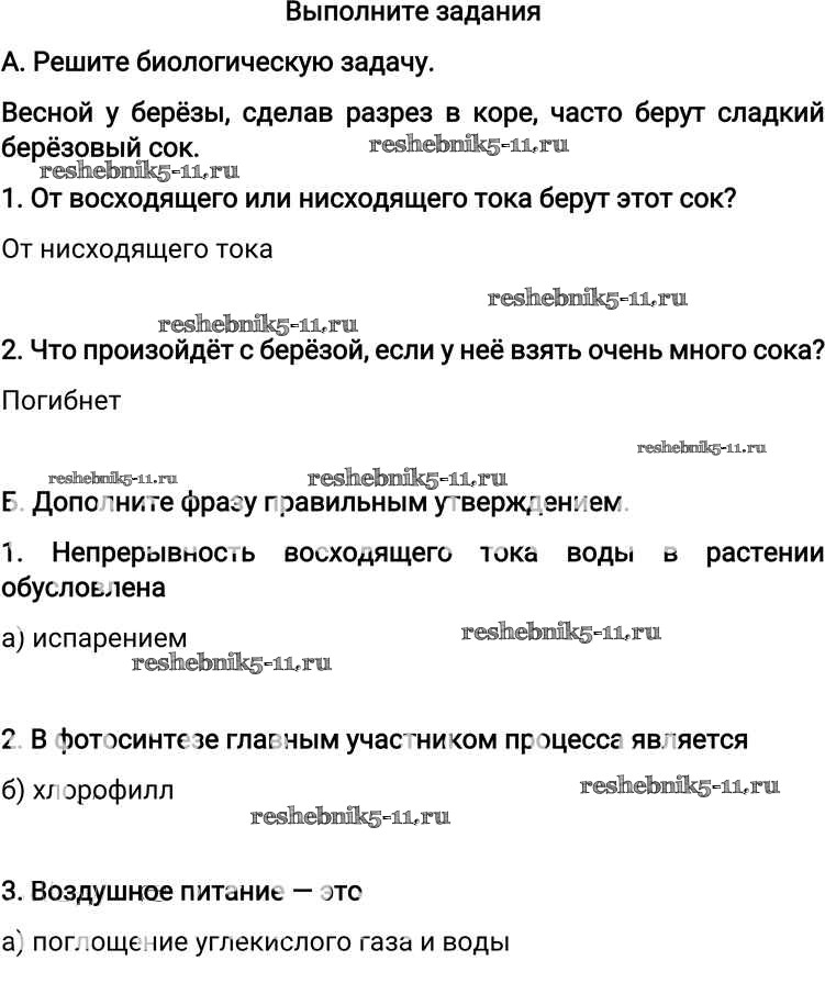 Биология за 6 класс Пономарева Учебник Алгоритм успеха Вентана-граф подведём итоги. глава 3 Тестовые задания