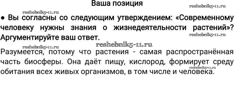 Готовая домашняя работа с ответами по Биологии за 6 класс Пономарева, Корнилова, Кучменко Учебник Алгоритм успеха Вентана-граф 2018 ФГОС - Подведём итоги. глава 3 Ваша позиция
