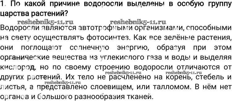 Готовая домашняя работа с ответами по Биологии за 6 класс Пономарева, Корнилова, Кучменко Учебник Алгоритм успеха Вентана-граф 2018 ФГОС - Вопросы 1