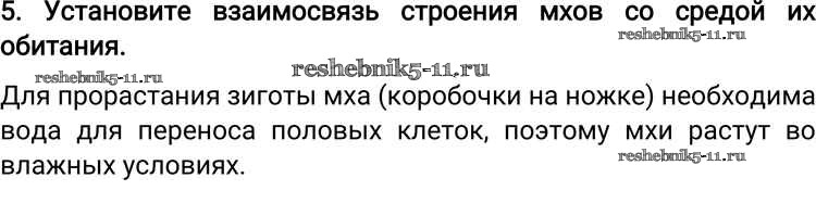 Готовая домашняя работа с ответами по Биологии за 6 класс Пономарева, Корнилова, Кучменко Учебник Алгоритм успеха Вентана-граф 2018 ФГОС - Вопросы 5