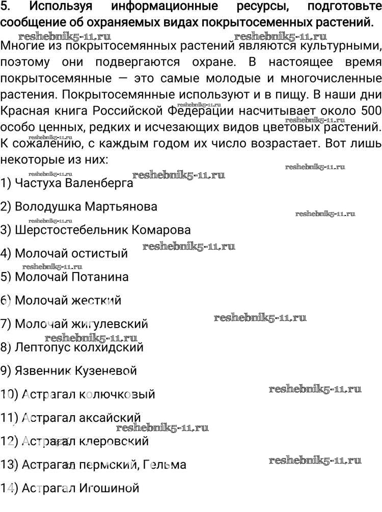 Готовая домашняя работа с ответами по Биологии за 6 класс Пономарева, Корнилова, Кучменко Учебник Алгоритм успеха Вентана-граф 2018 ФГОС - Вопросы 5