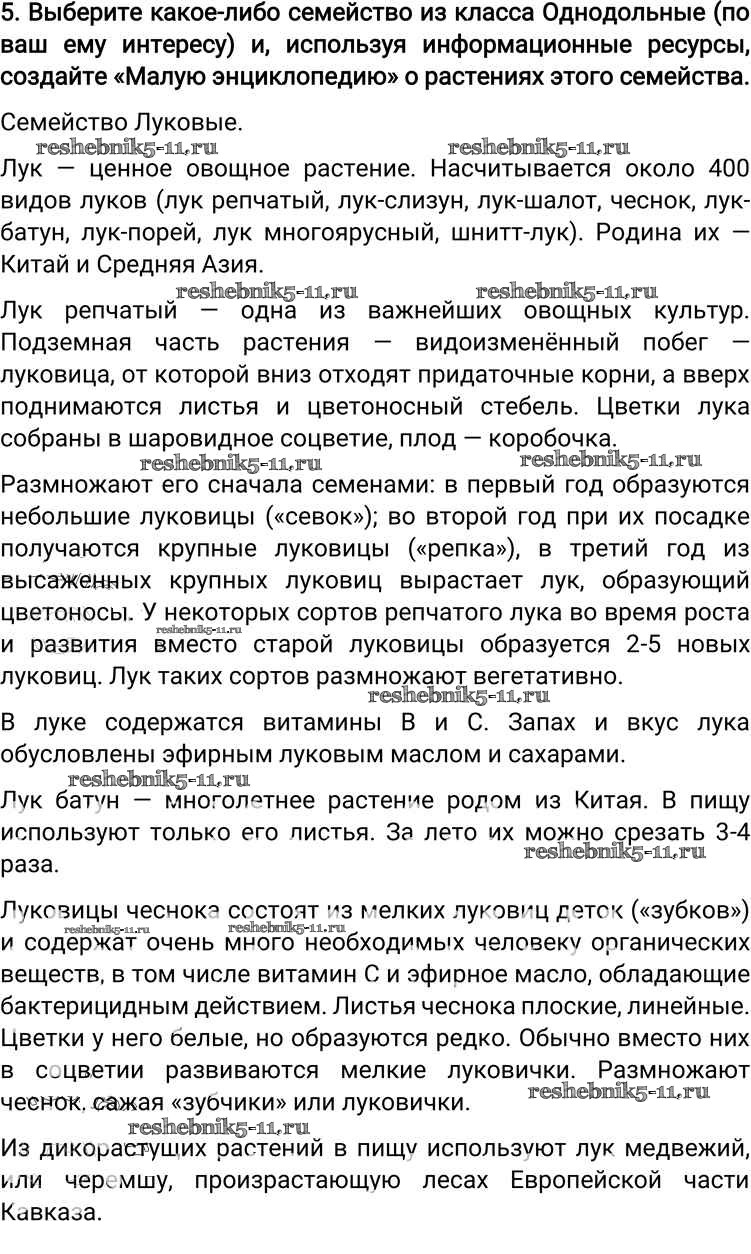 Готовая домашняя работа с ответами по Биологии за 6 класс Пономарева, Корнилова, Кучменко Учебник Алгоритм успеха Вентана-граф 2018 ФГОС - Вопросы 5