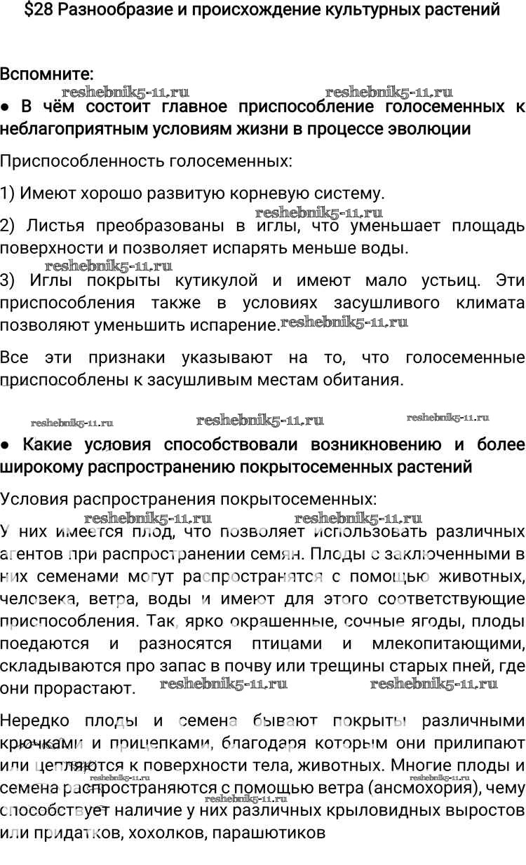 Готовая домашняя работа с ответами по Биологии за 6 класс Пономарева, Корнилова, Кучменко Учебник Алгоритм успеха Вентана-граф 2018 ФГОС - §28. Разнообразие и происхождение культурных растений Вспомните