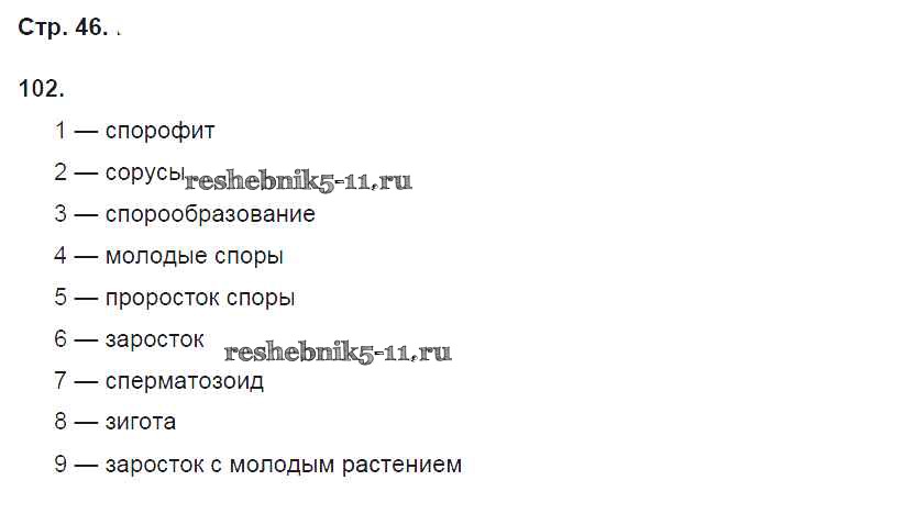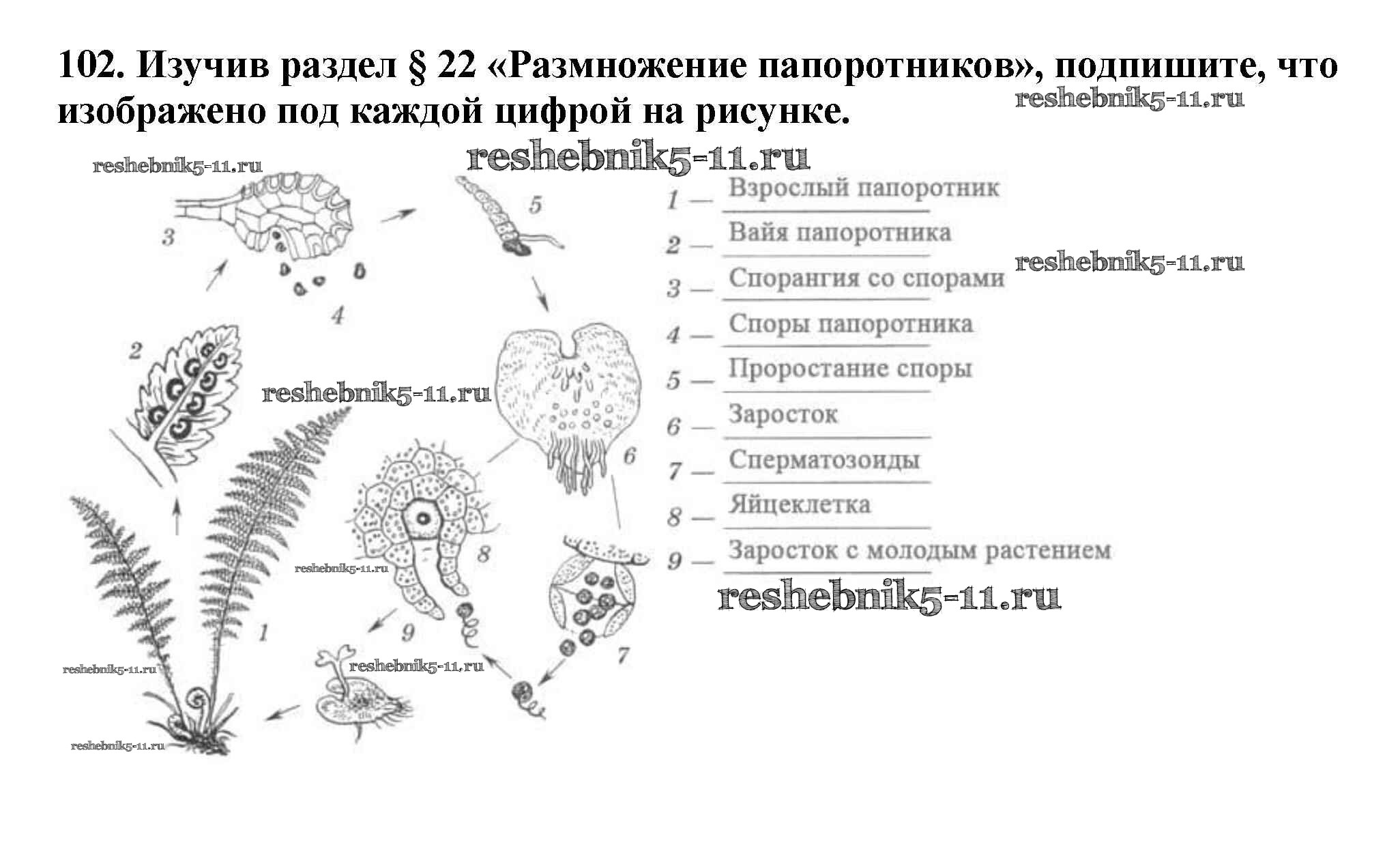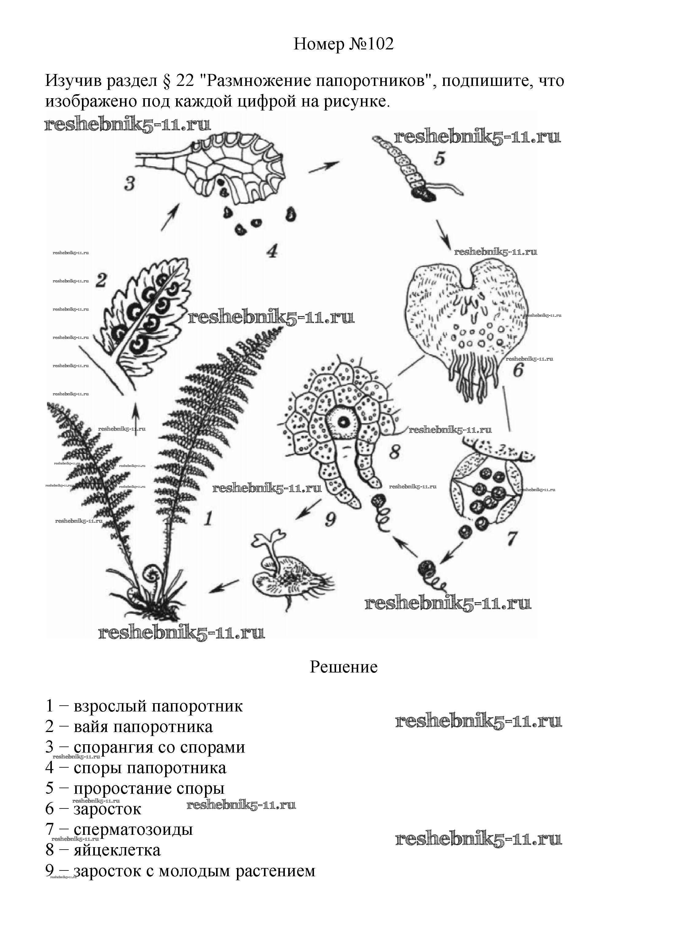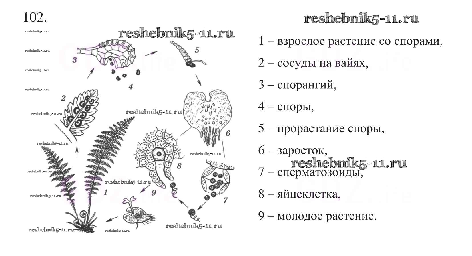 Готовая домашняя работа с ответами по Биологии за 6 класс Пасечник Рабочая тетрадь УМК Дрофа 2017 ФГОС - Упражнения 102