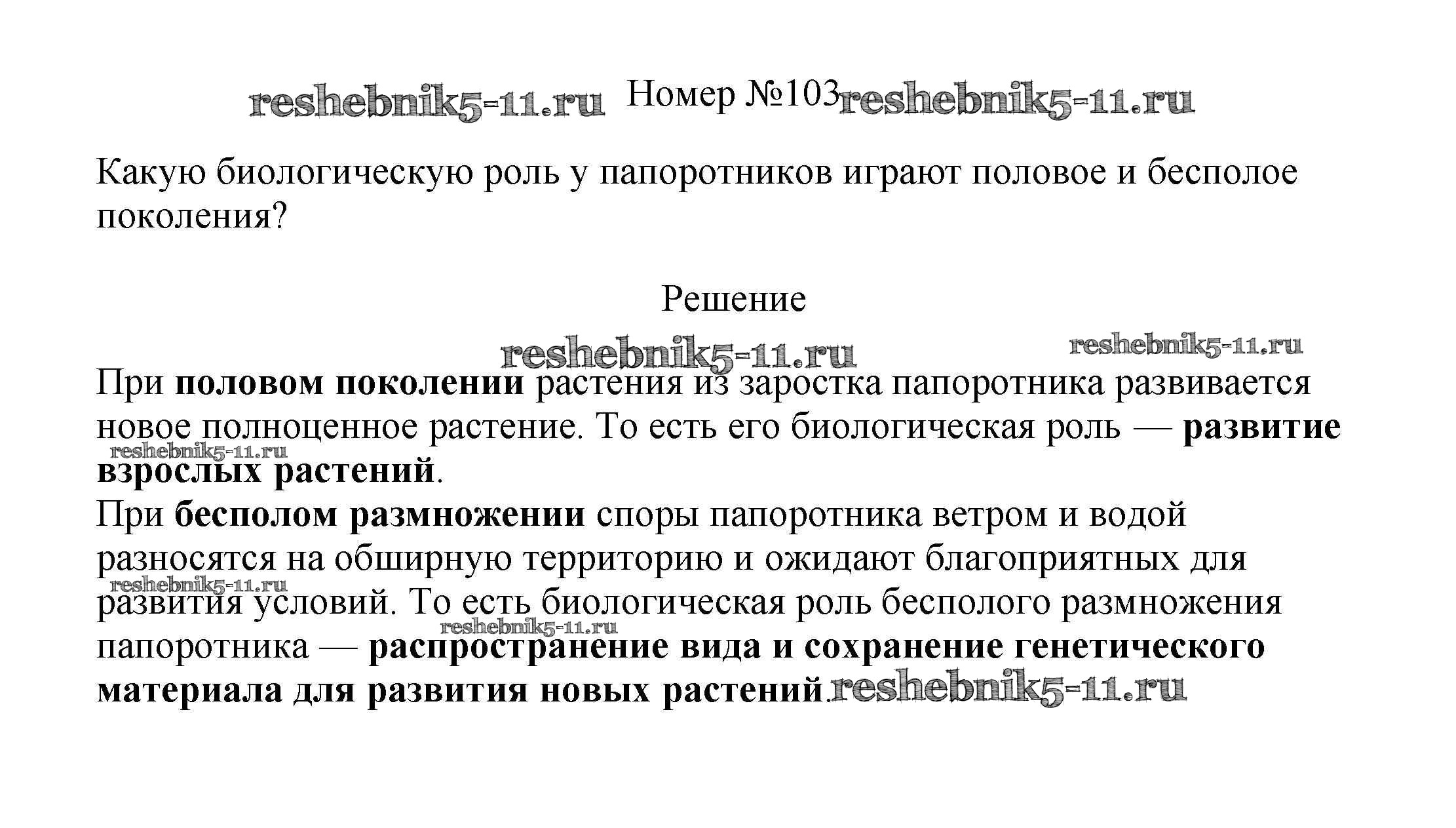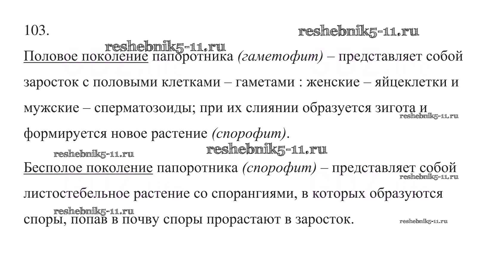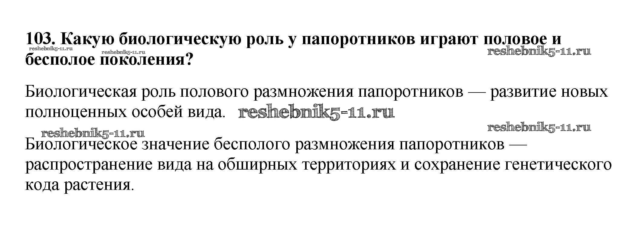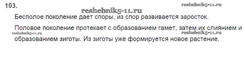 Готовая домашняя работа с ответами по Биологии за 6 класс Пасечник Рабочая тетрадь УМК Дрофа 2017 ФГОС - Упражнения 103