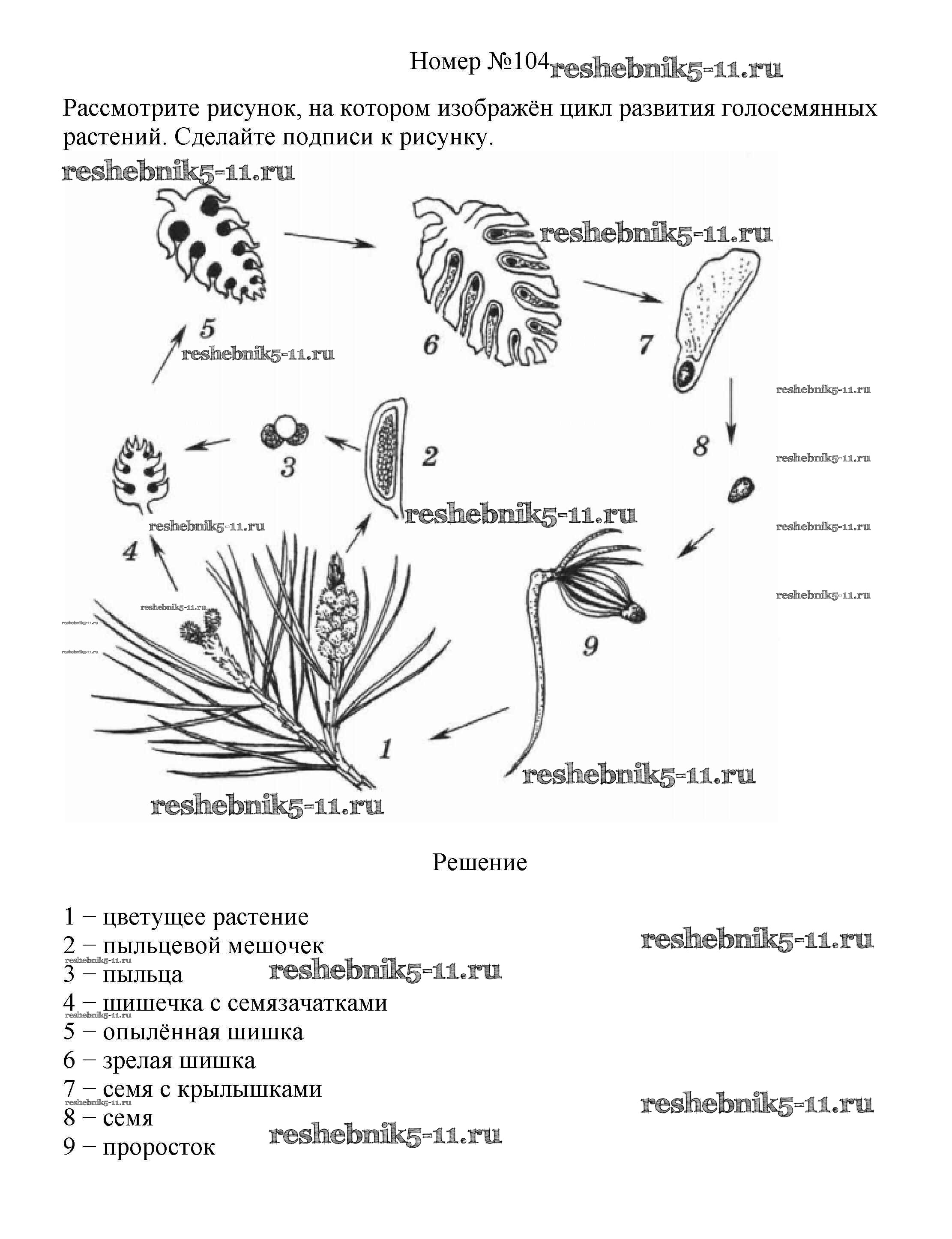 Готовая домашняя работа с ответами по Биологии за 6 класс Пасечник Рабочая тетрадь УМК Дрофа 2017 ФГОС - Упражнения 104