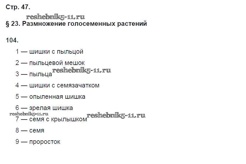 Биология за 6 класс Пасечник Рабочая тетрадь УМК Дрофа упражнение 104