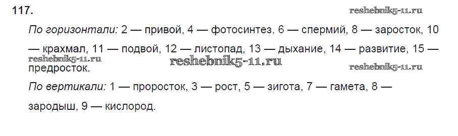 Готовая домашняя работа с ответами по Биологии за 6 класс Пасечник Рабочая тетрадь УМК Дрофа 2017 ФГОС - Упражнения 117