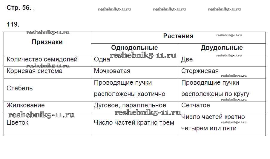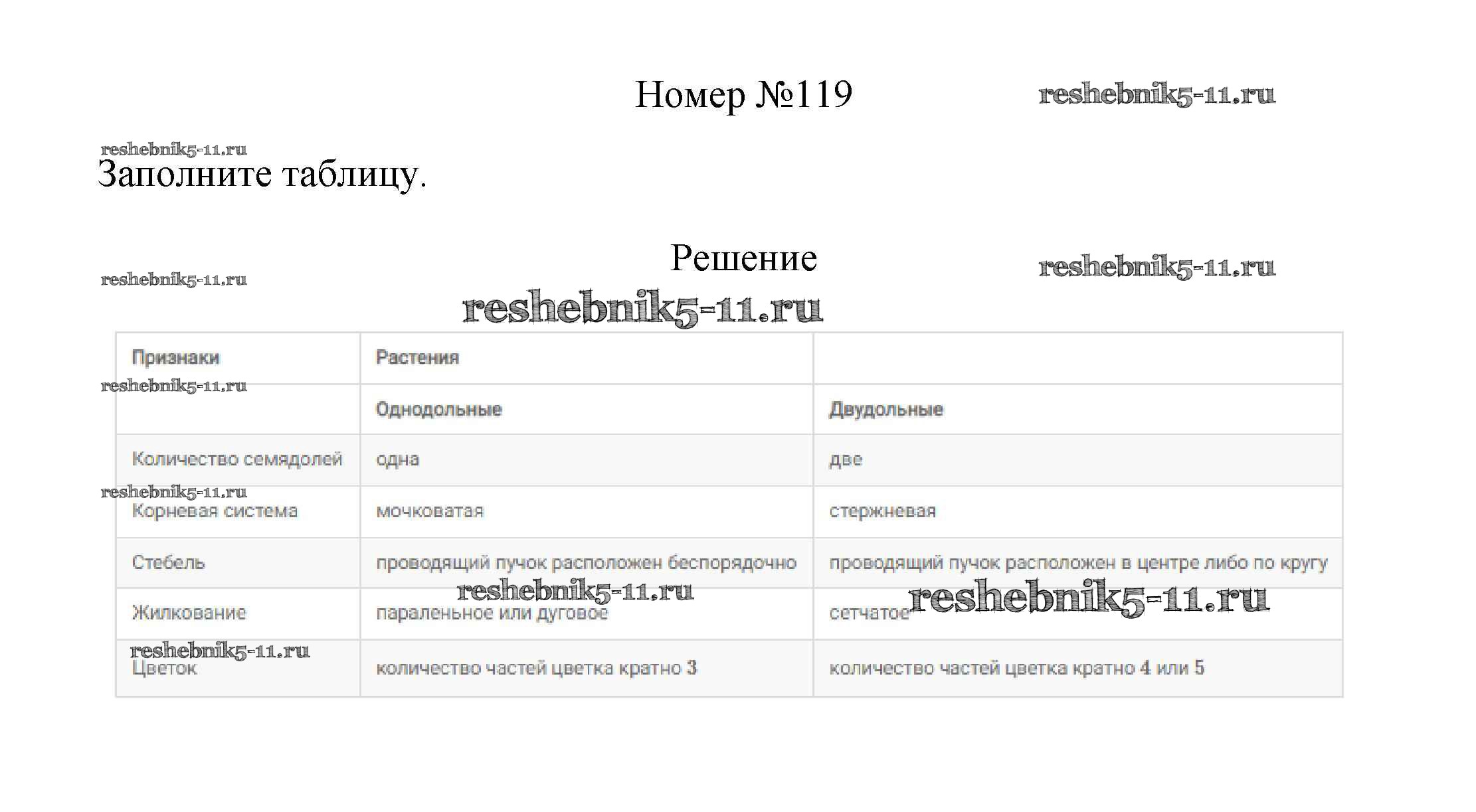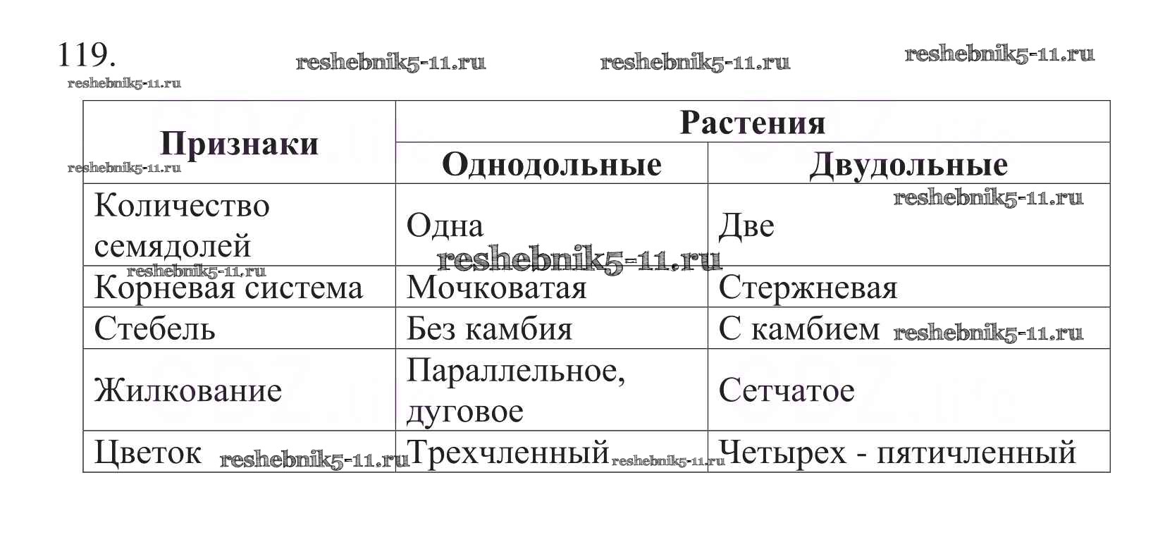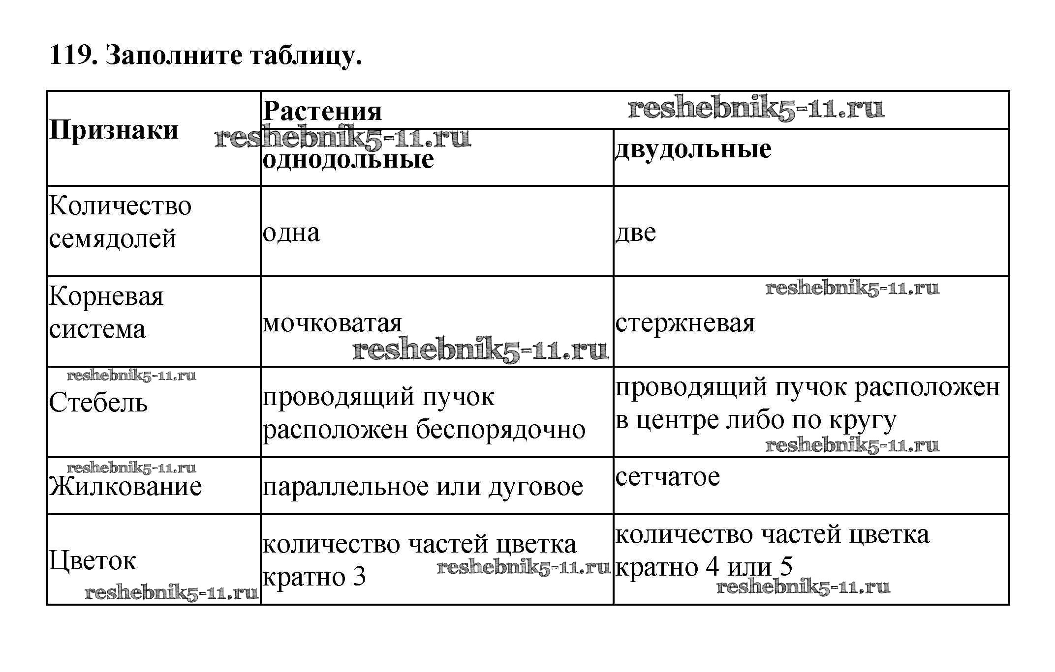 Готовая домашняя работа с ответами по Биологии за 6 класс Пасечник Рабочая тетрадь УМК Дрофа 2017 ФГОС - Упражнения 119