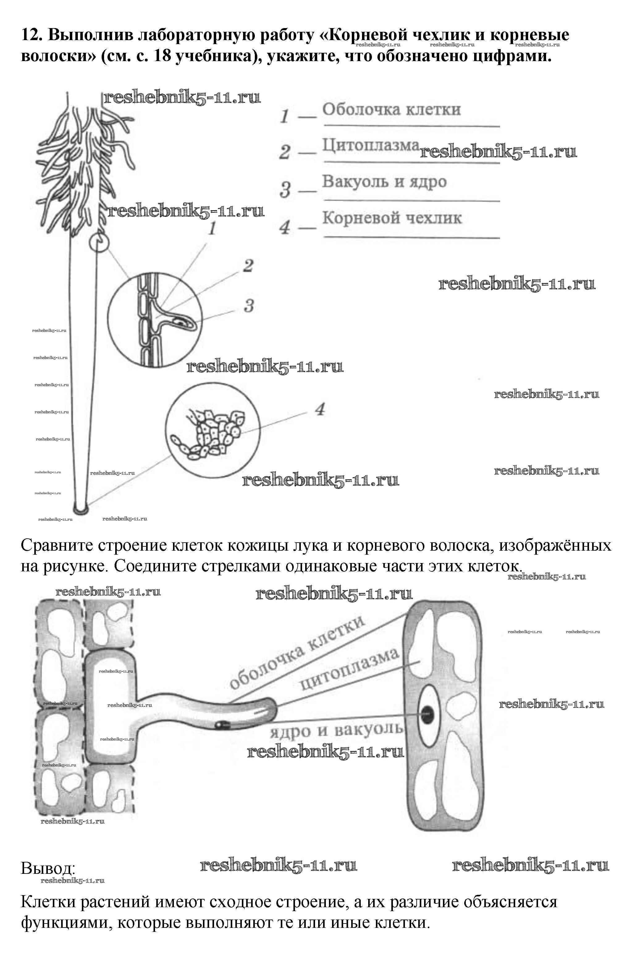 Готовая домашняя работа с ответами по Биологии за 6 класс Пасечник Рабочая тетрадь УМК Дрофа 2017 ФГОС - Упражнения 12