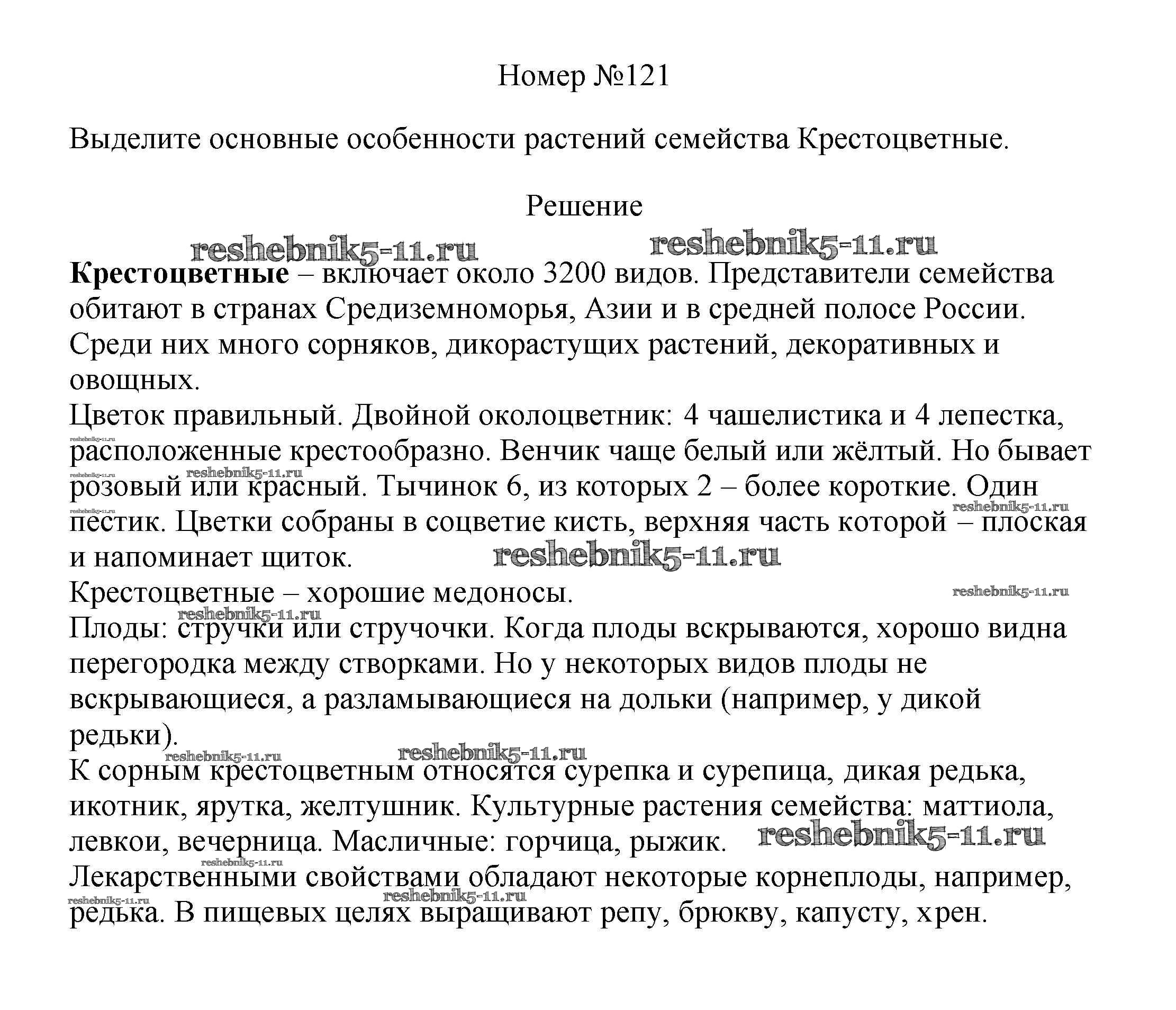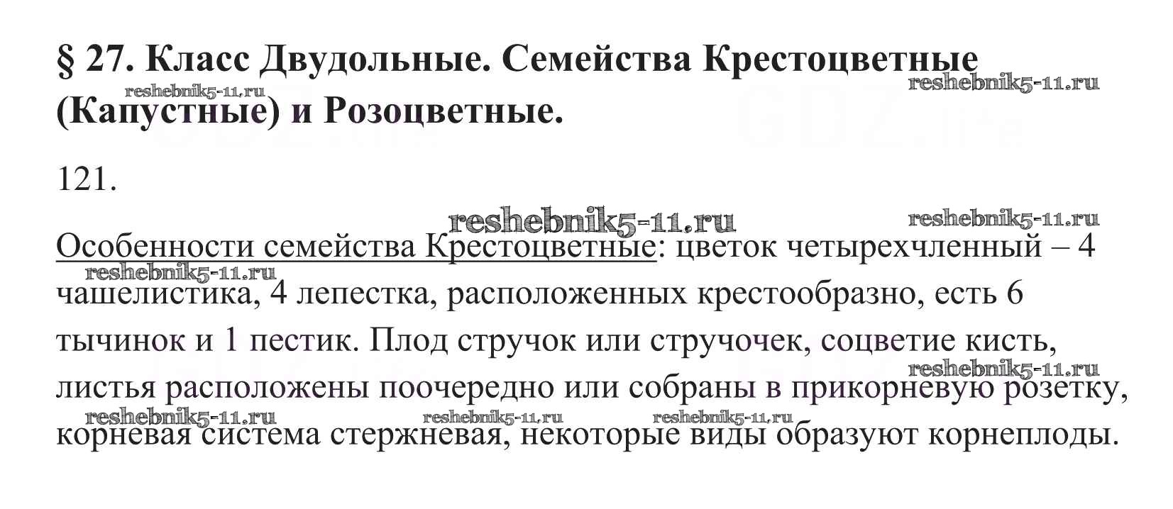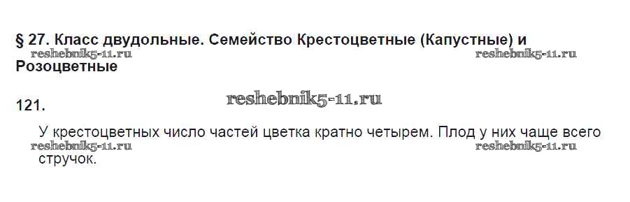Готовая домашняя работа с ответами по Биологии за 6 класс Пасечник Рабочая тетрадь УМК Дрофа 2017 ФГОС - Упражнения 121