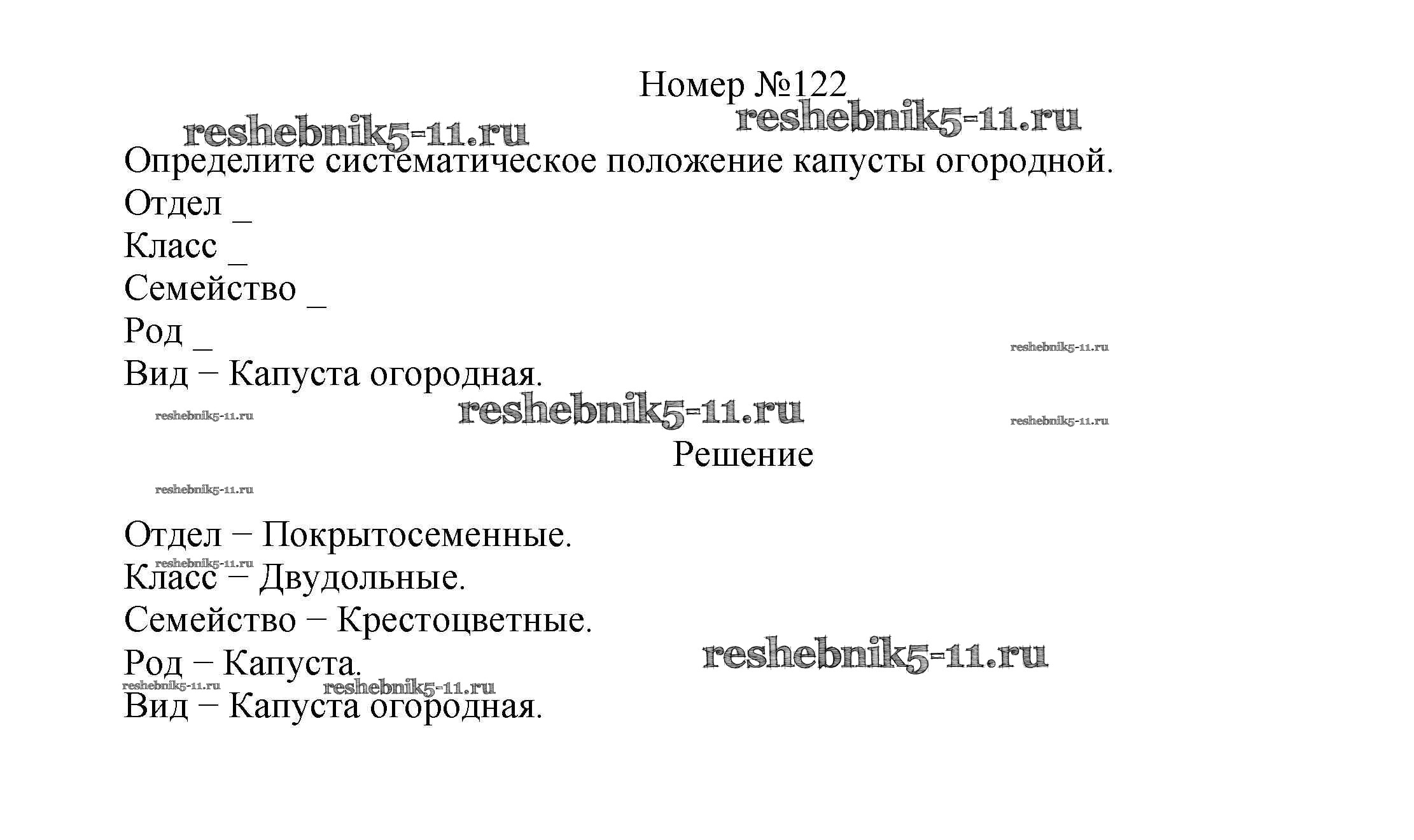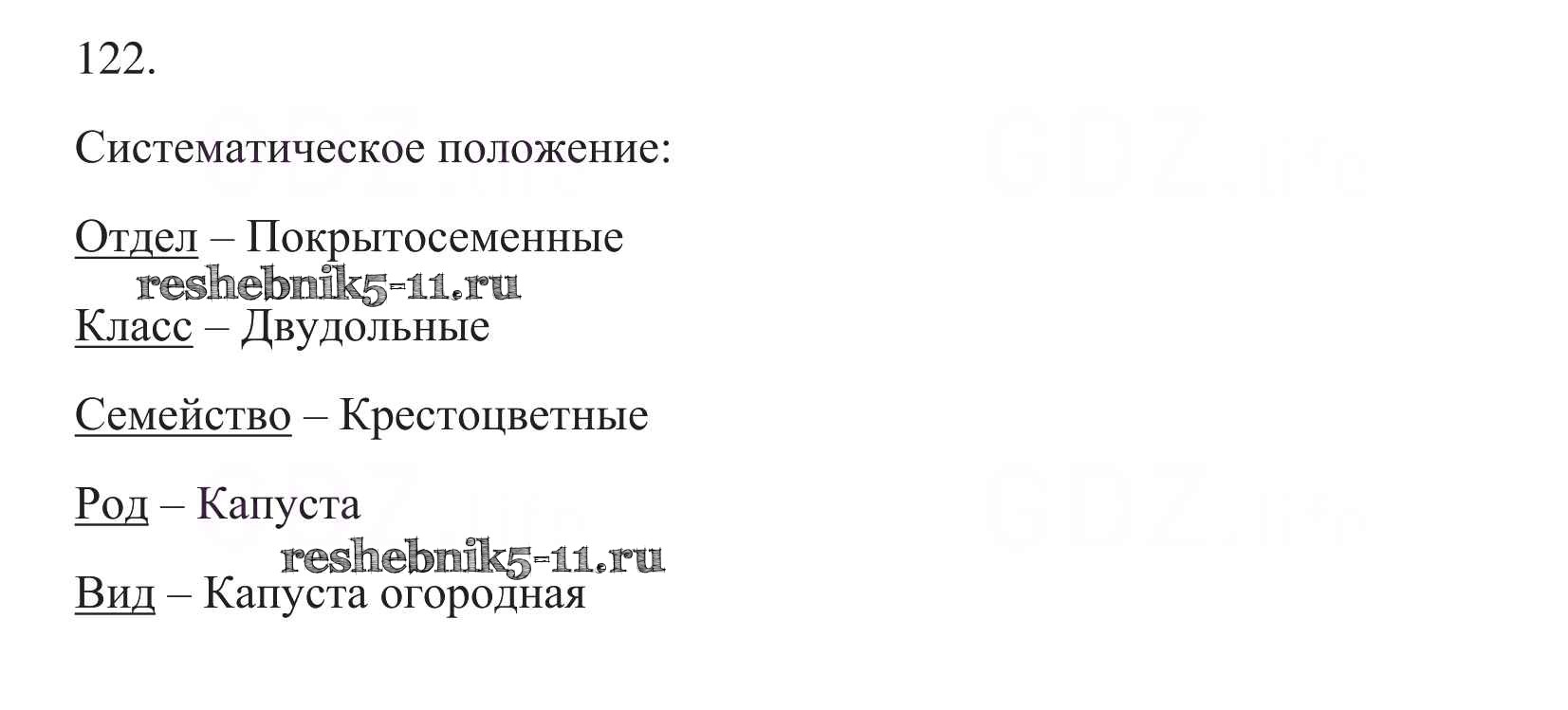 Готовая домашняя работа с ответами по Биологии за 6 класс Пасечник Рабочая тетрадь УМК Дрофа 2017 ФГОС - Упражнения 122