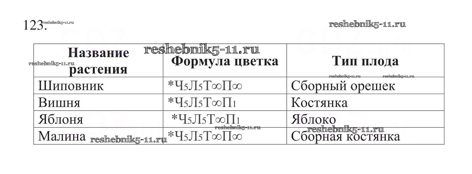 Готовая домашняя работа с ответами по Биологии за 6 класс Пасечник Рабочая тетрадь УМК Дрофа 2017 ФГОС - Упражнения 123
