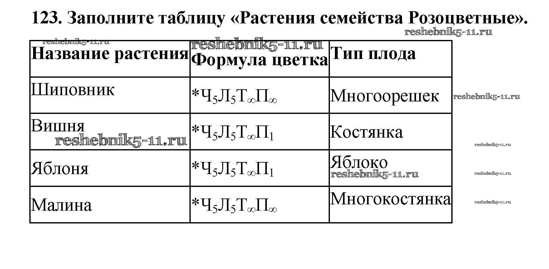 Биология за 6 класс Пасечник Рабочая тетрадь УМК Дрофа упражнение 123