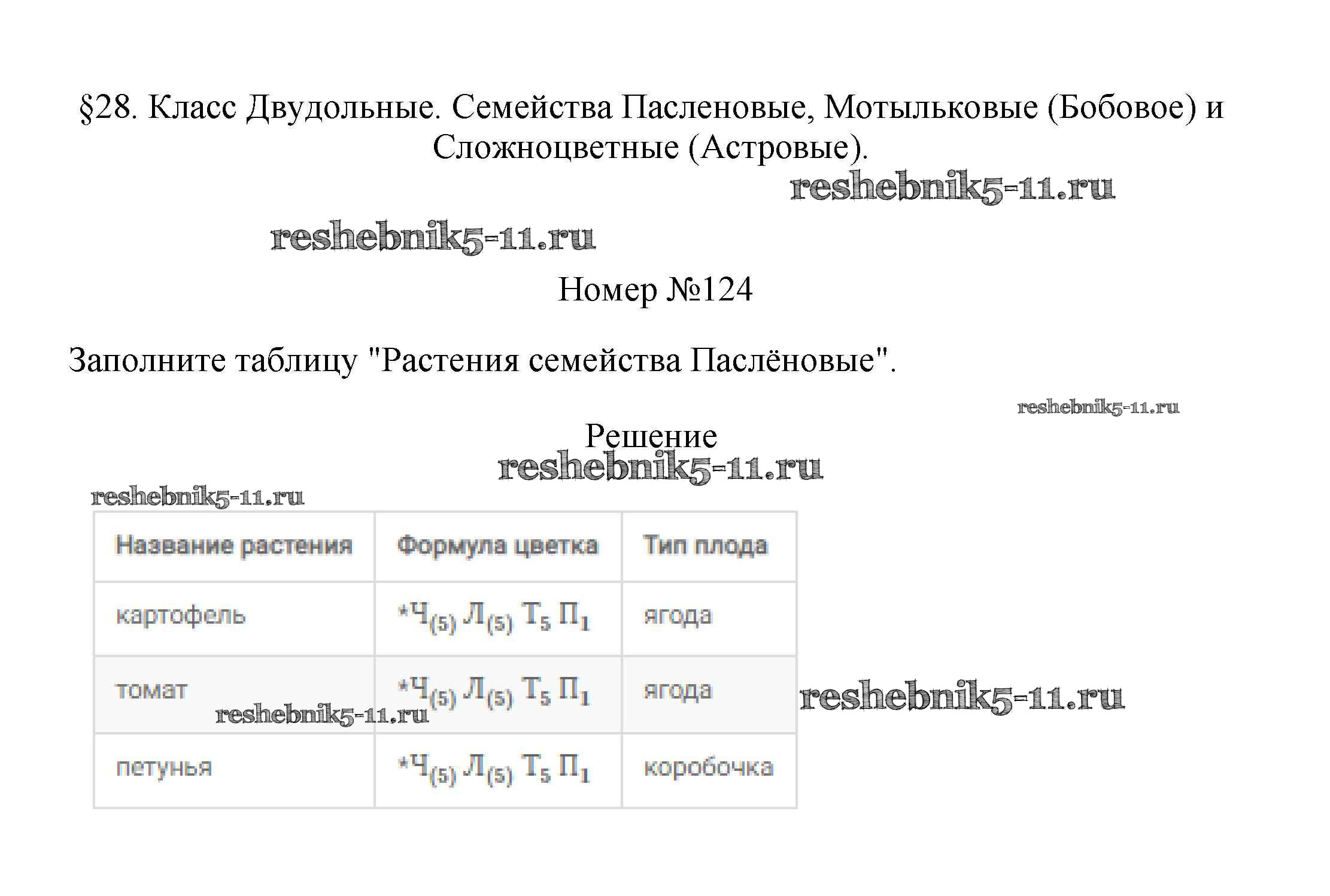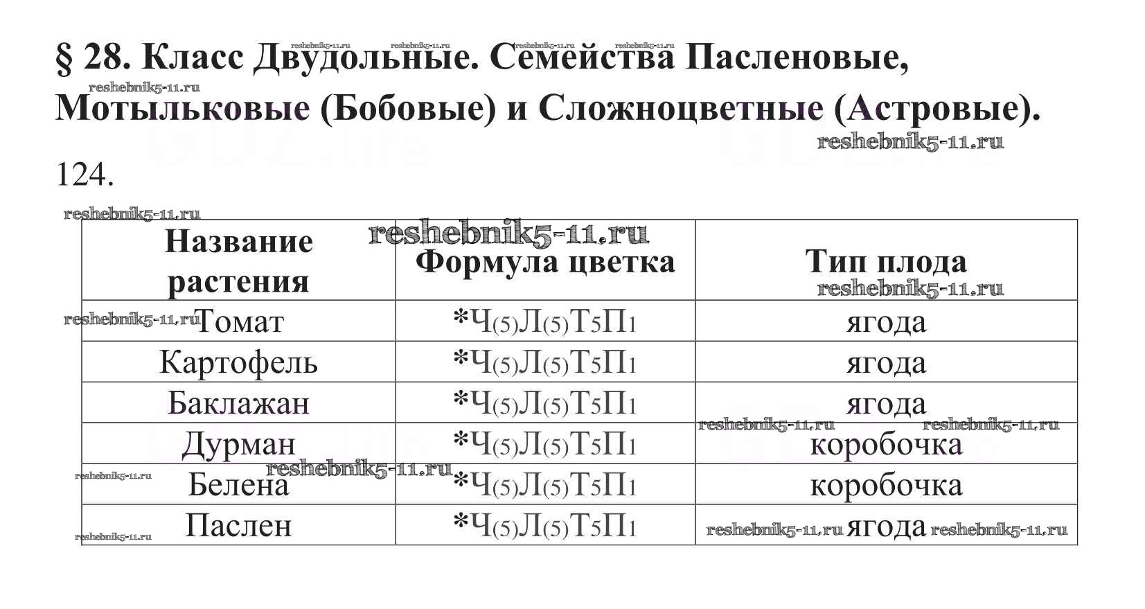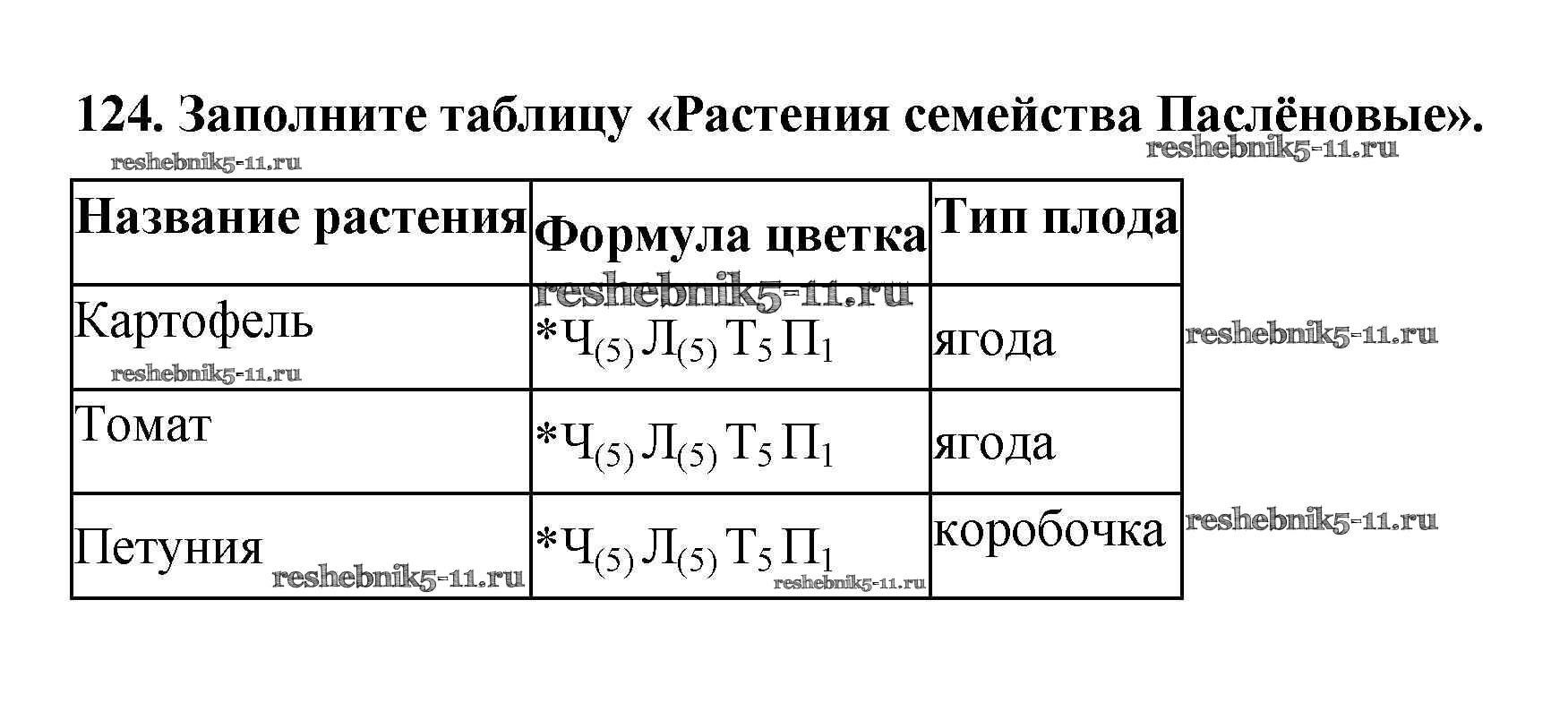 Готовая домашняя работа с ответами по Биологии за 6 класс Пасечник Рабочая тетрадь УМК Дрофа 2017 ФГОС - Упражнения 124