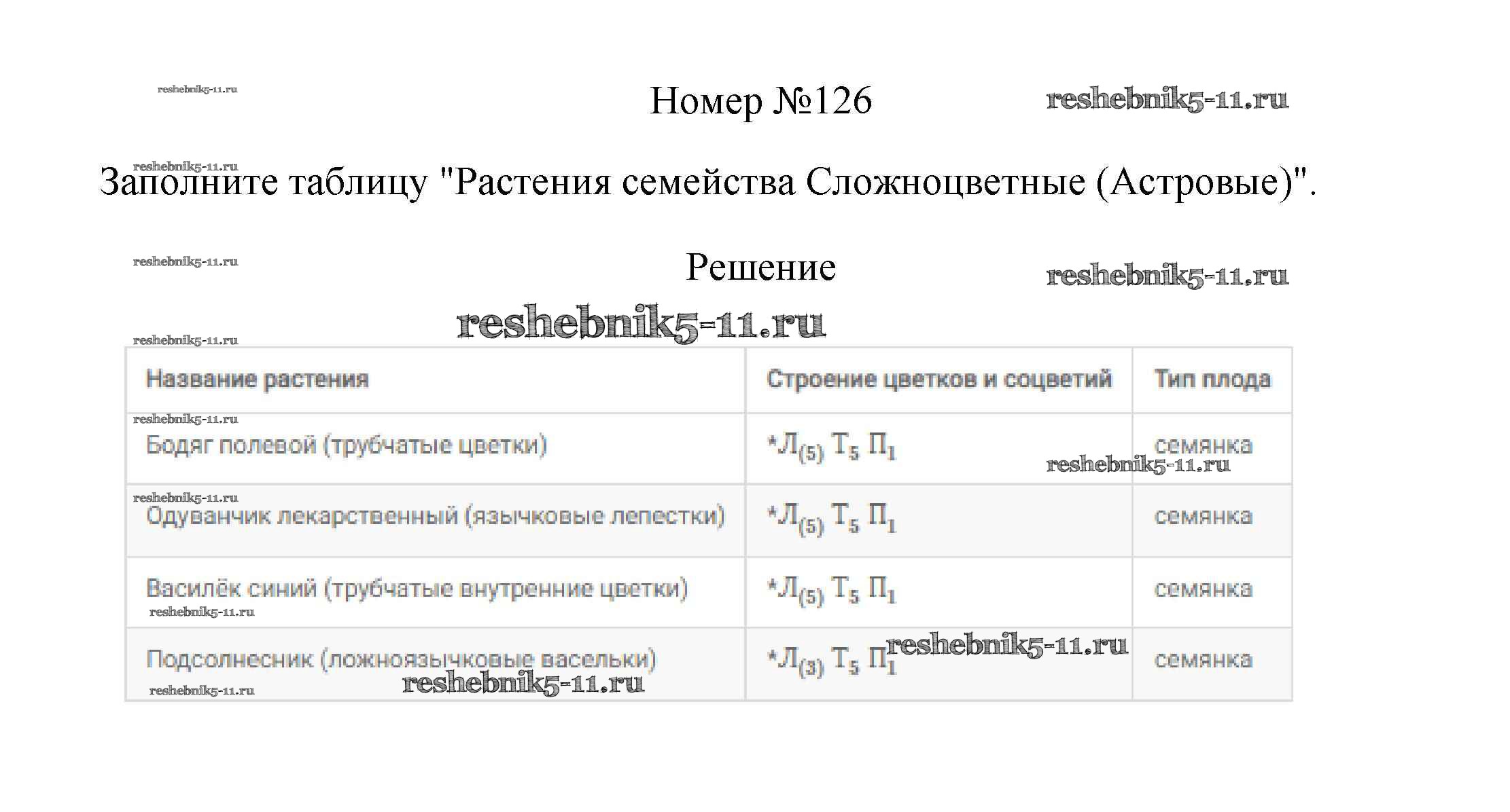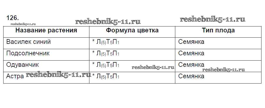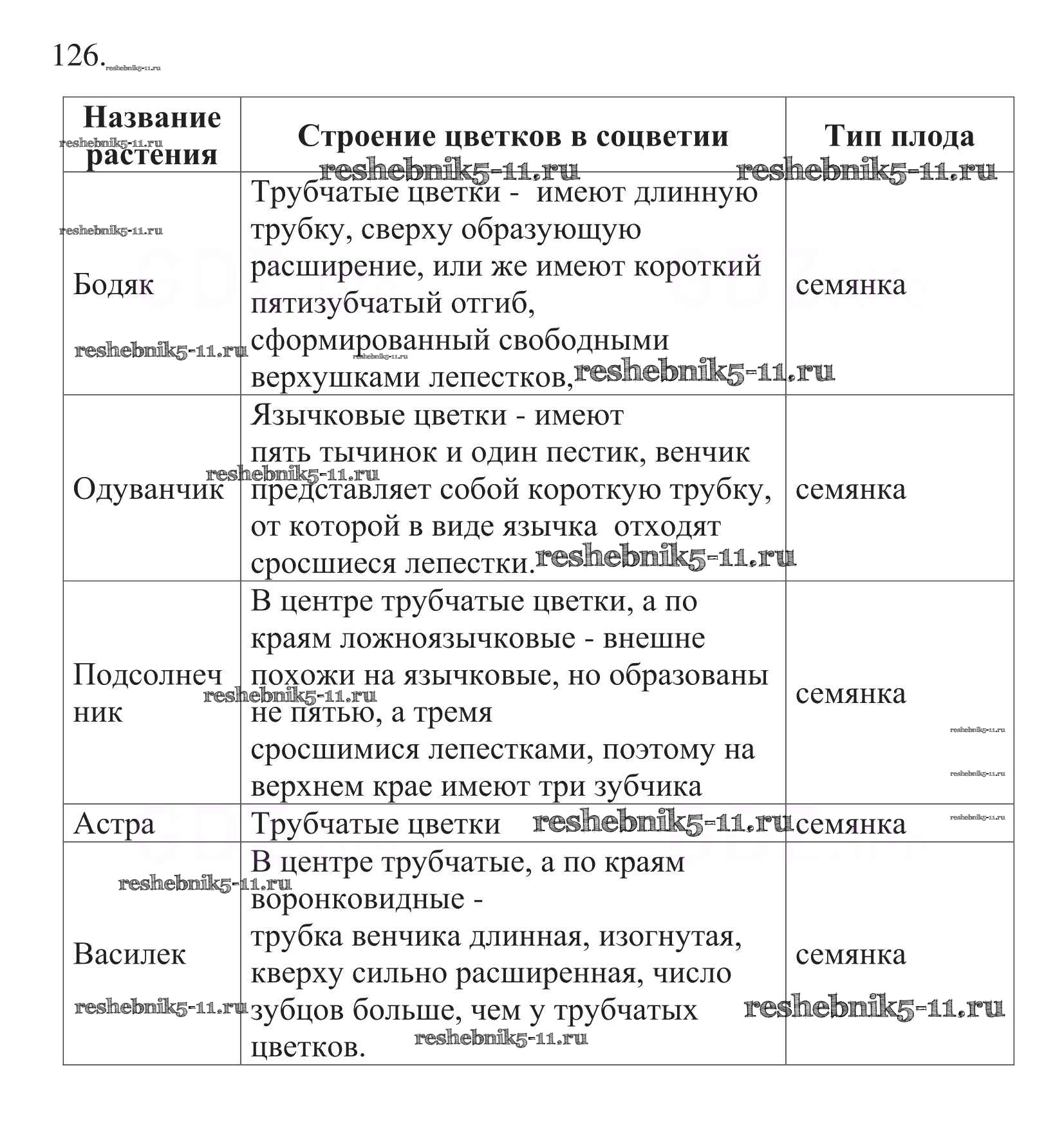 Готовая домашняя работа с ответами по Биологии за 6 класс Пасечник Рабочая тетрадь УМК Дрофа 2017 ФГОС - Упражнения 126