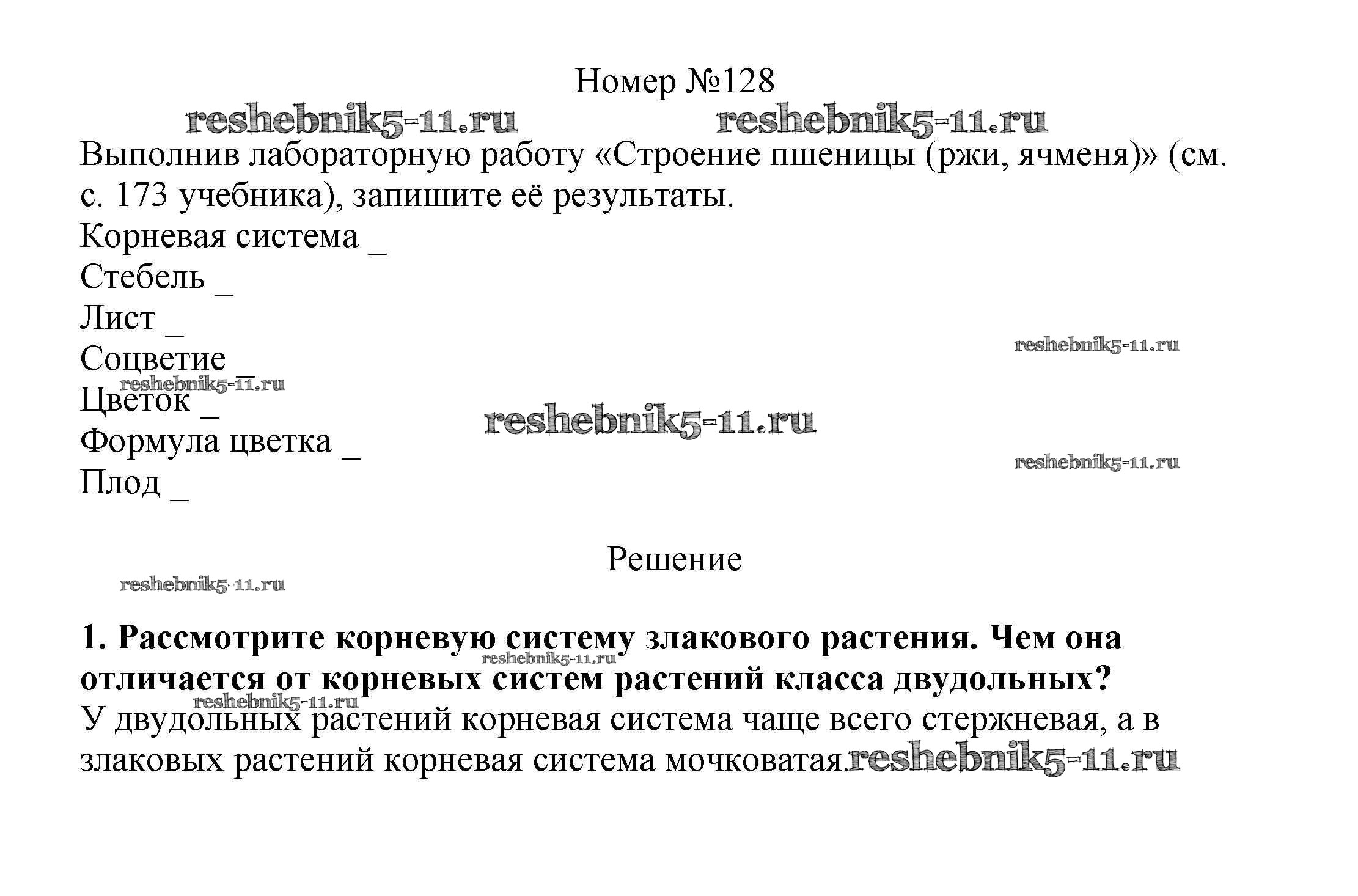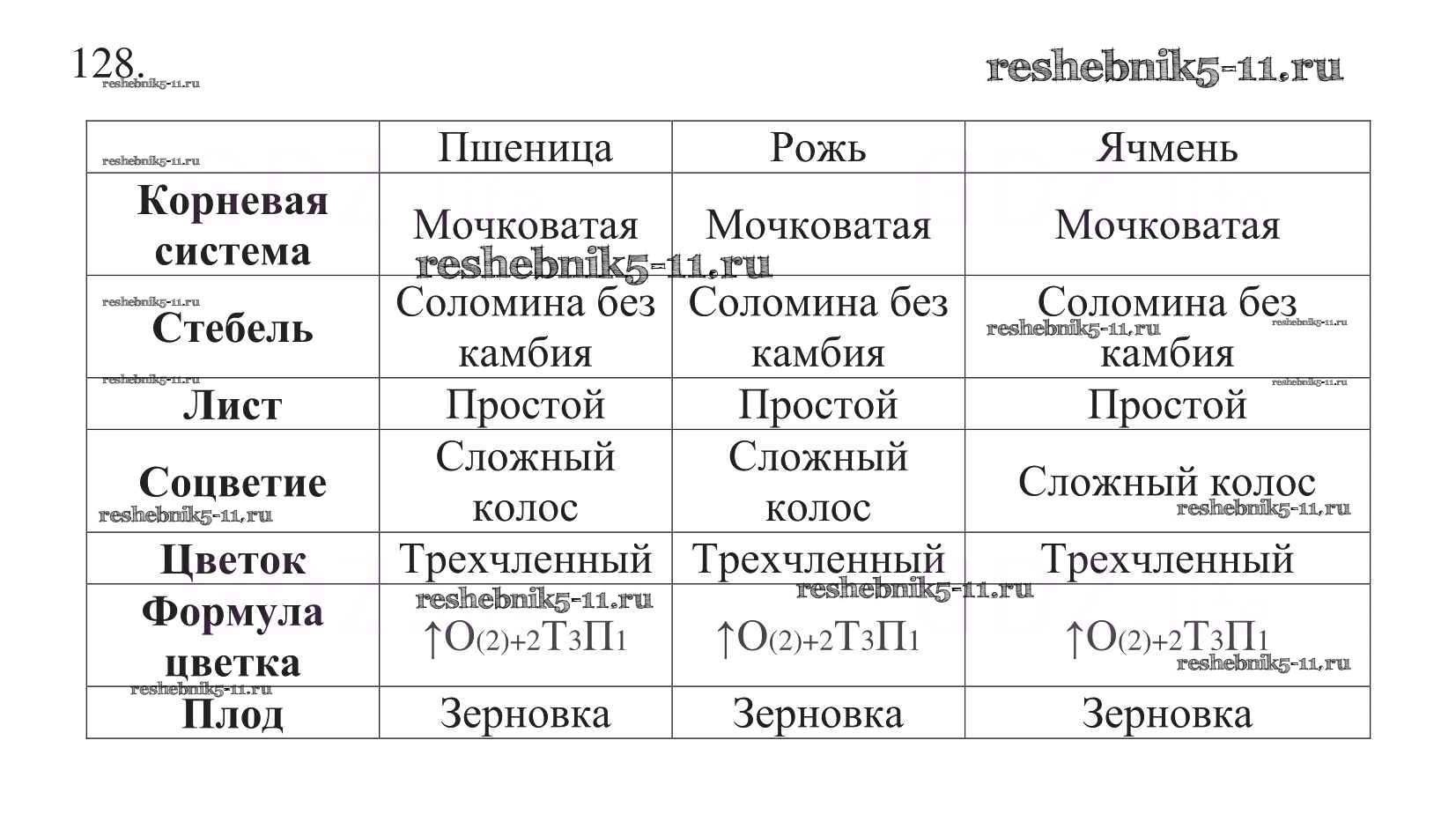 Готовая домашняя работа с ответами по Биологии за 6 класс Пасечник Рабочая тетрадь УМК Дрофа 2017 ФГОС - Упражнения 128