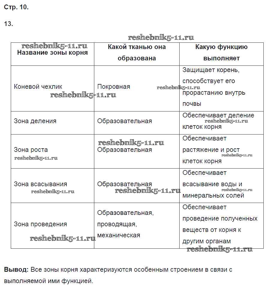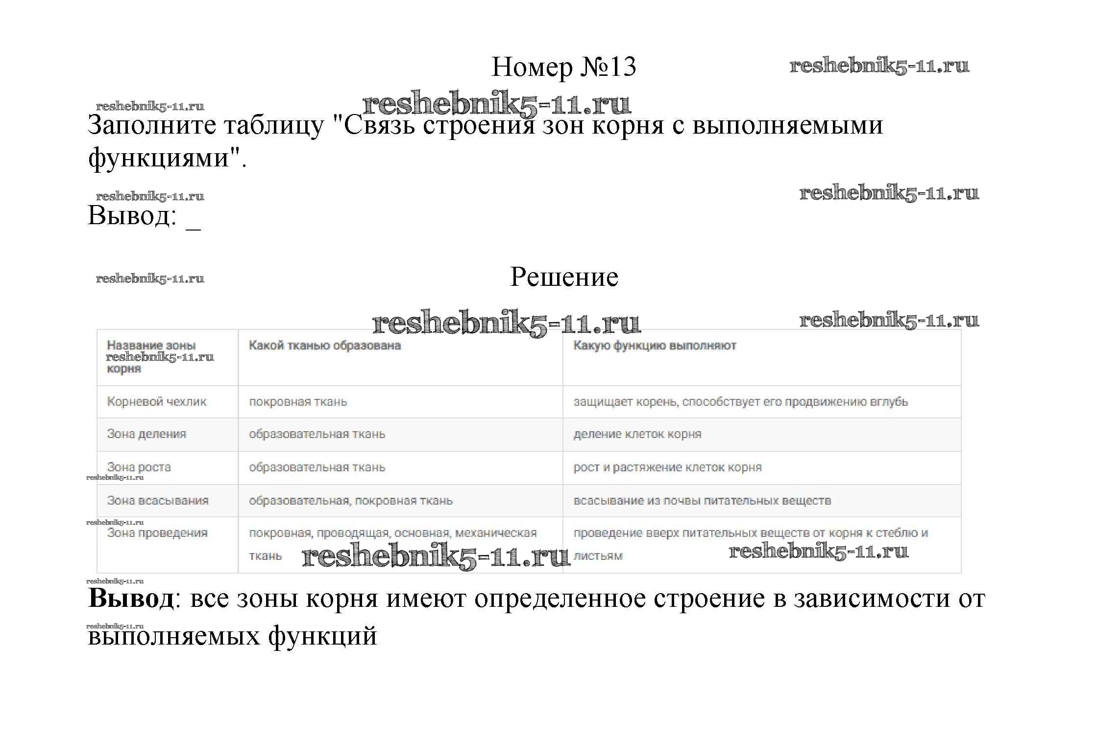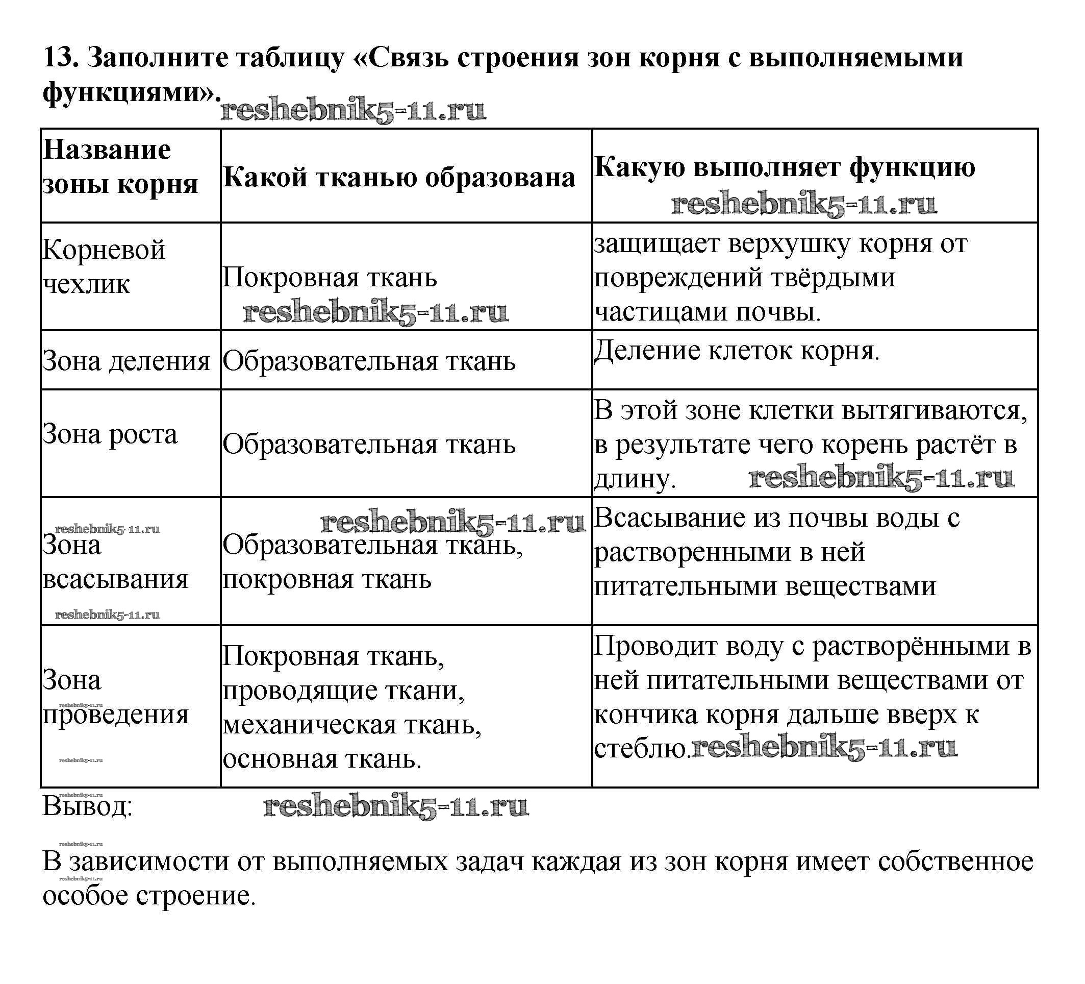 Биология за 6 класс Пасечник Рабочая тетрадь УМК Дрофа упражнение 13